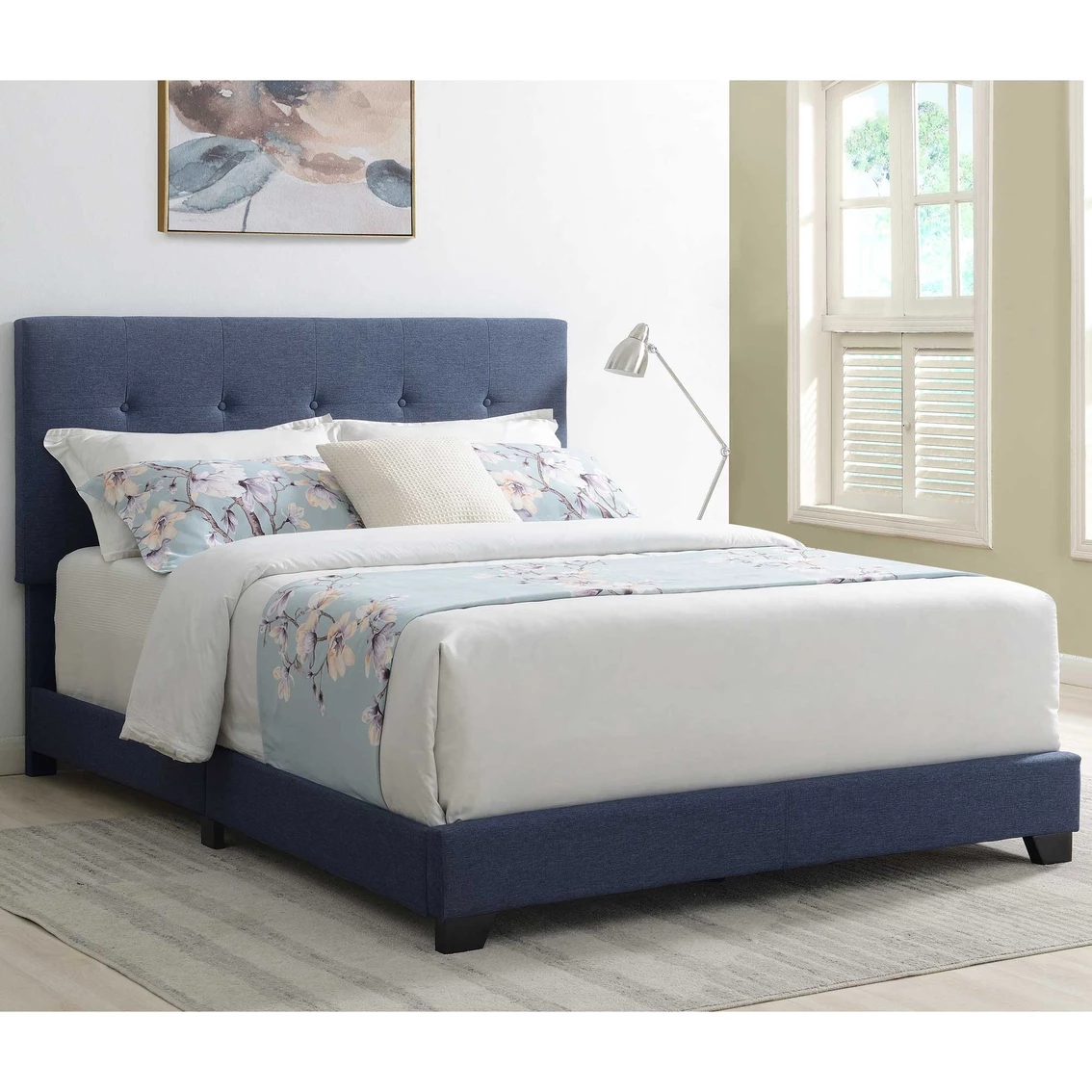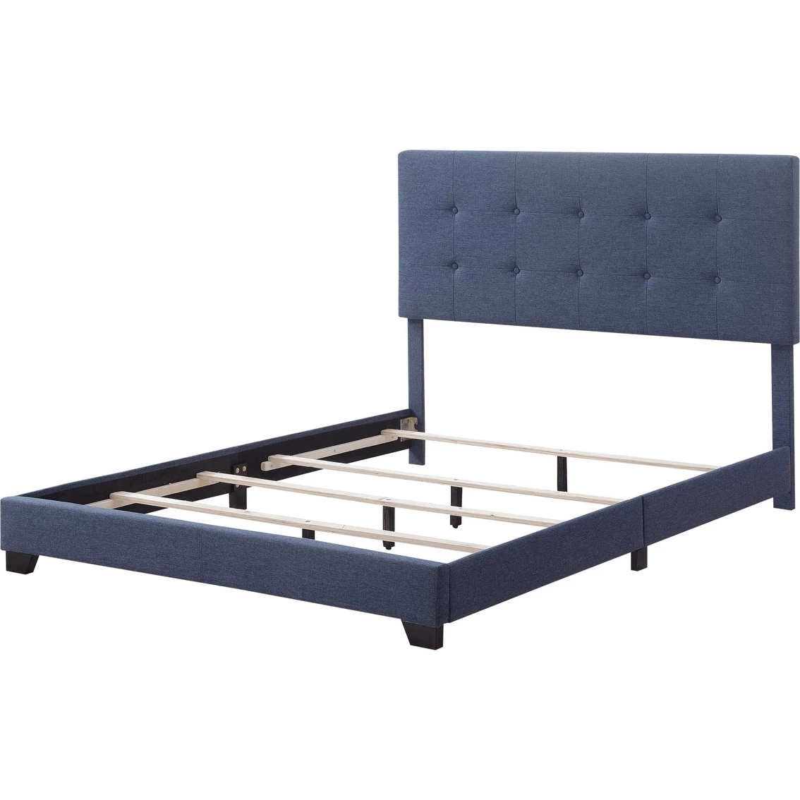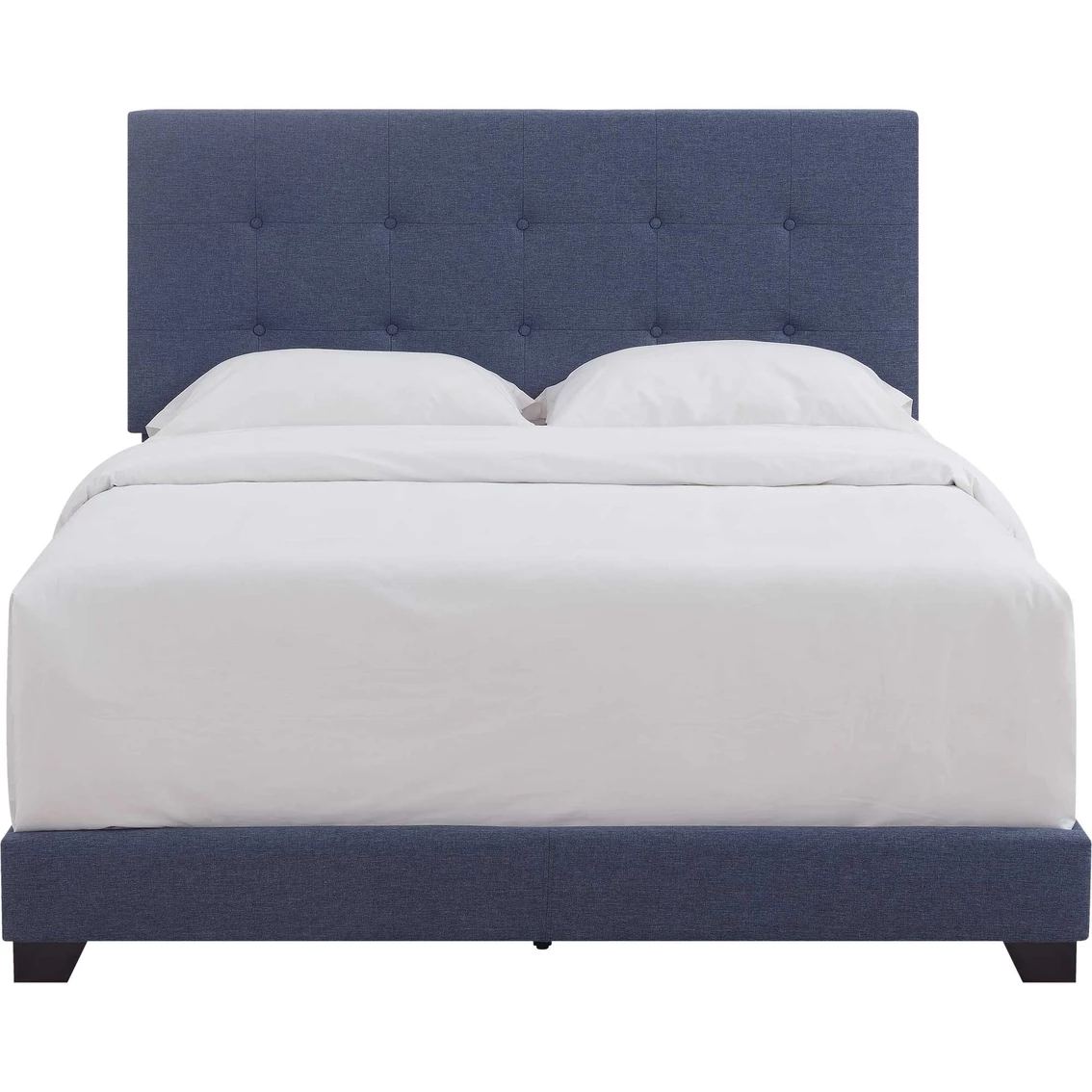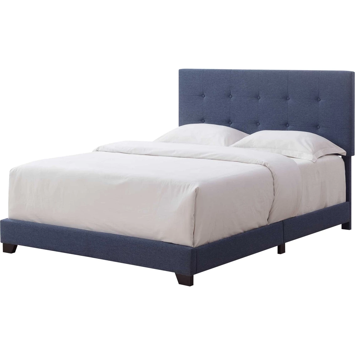A bed should always inspire tranquility, comfort, and a pleasant feeling of relaxation – and this beautiful button-tufted bed handles it all with grace. Sleek linen-like fabric is soft to the touch, highlighting shade-matched buttons in the center of each stitch-bordered square. Plush foam cushioning amplifies the textured appearance across the headboard, and shade-matched hinged side rails and a low footboard complete the look. This all-in-one style bed is easy to set up – simply assemble and add your favorite box spring, mattress, and linens for an inviting look and feel. Infused with classic style and clean, modern lines, this is the finishing decor touch you’ve been searching for. Model: DS-A125-290-113.