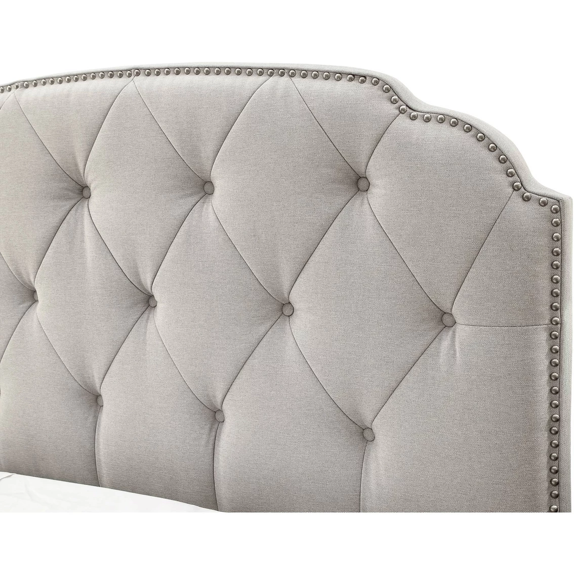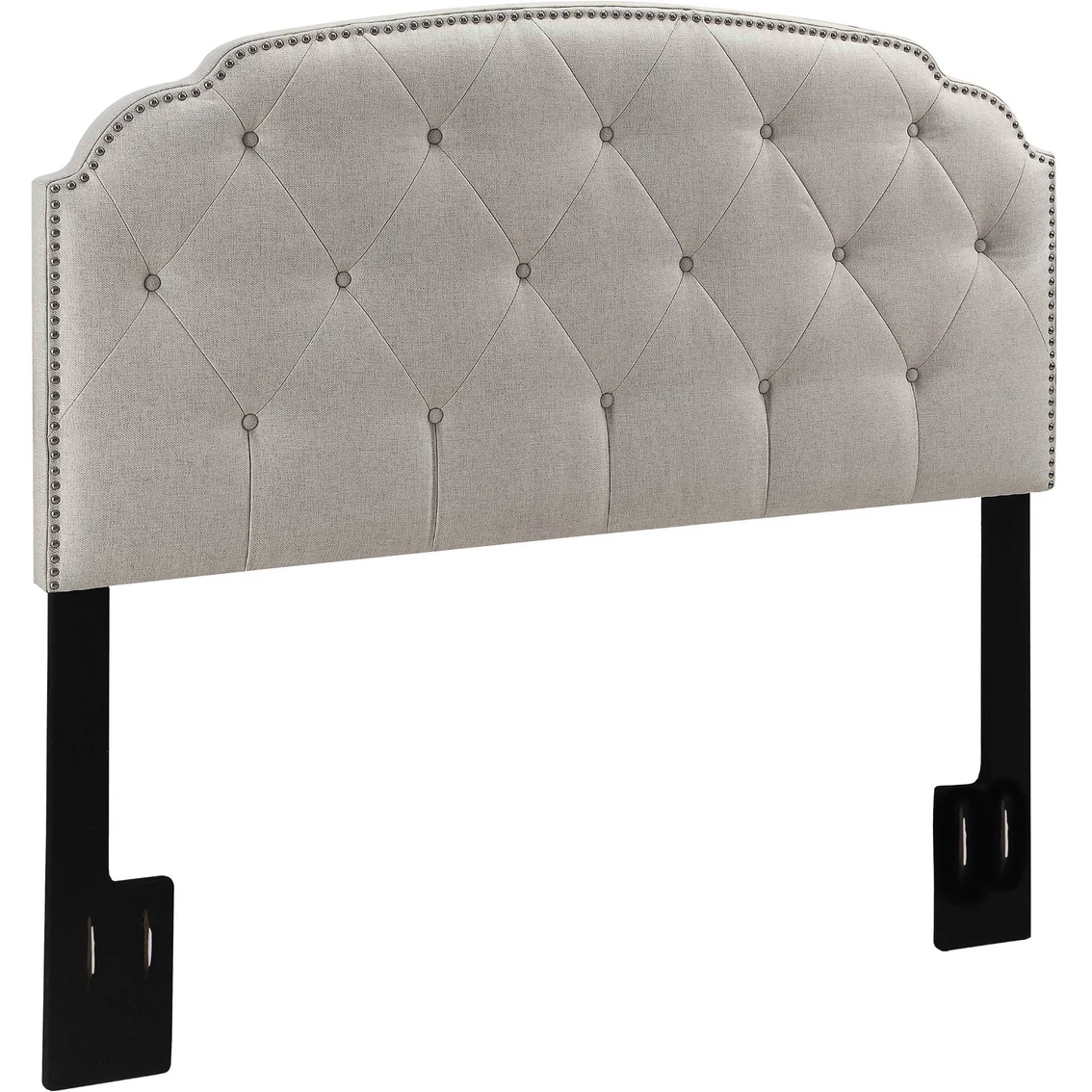 You’ll find a smart style solution in one convenient package with this beautiful upholstered headboard from Accentrics Home. An innovative pair of hinged side rails allow an adjustable-height headboard, a low-profile foot board, and a three-slat frame to fit into the same shipping box, minimizing your setup time. A clipped-corner silhouette, brushed nickel nail head trim and plush button tufting steal the spotlight, making your bed both inviting and chic. Please Note: The side rails and footboard are sold separately. Color: Cloud Gray. Model: 300-2223.