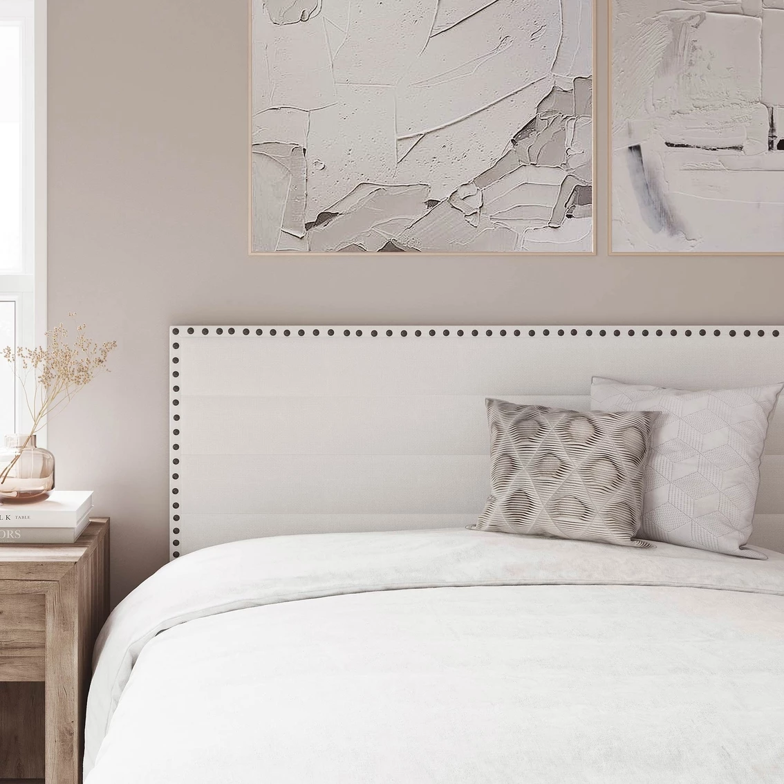 Promo 😉 Accentrics Home Shaped Nail Head Trim Twin Adjustable Upholstered Headboard, White ⌛