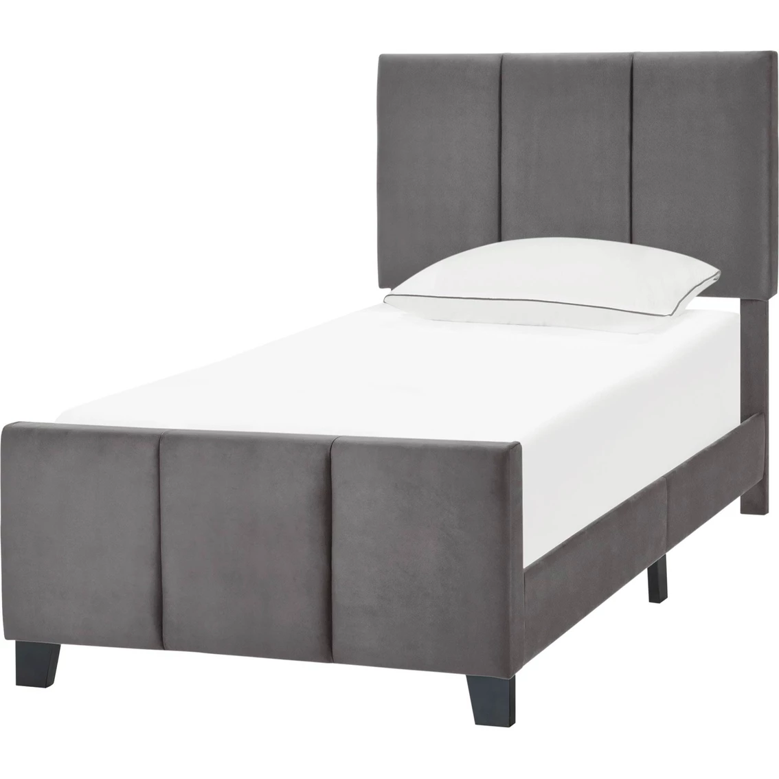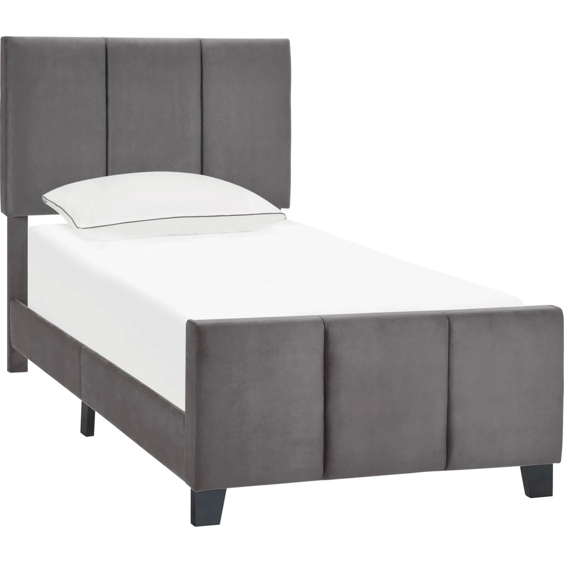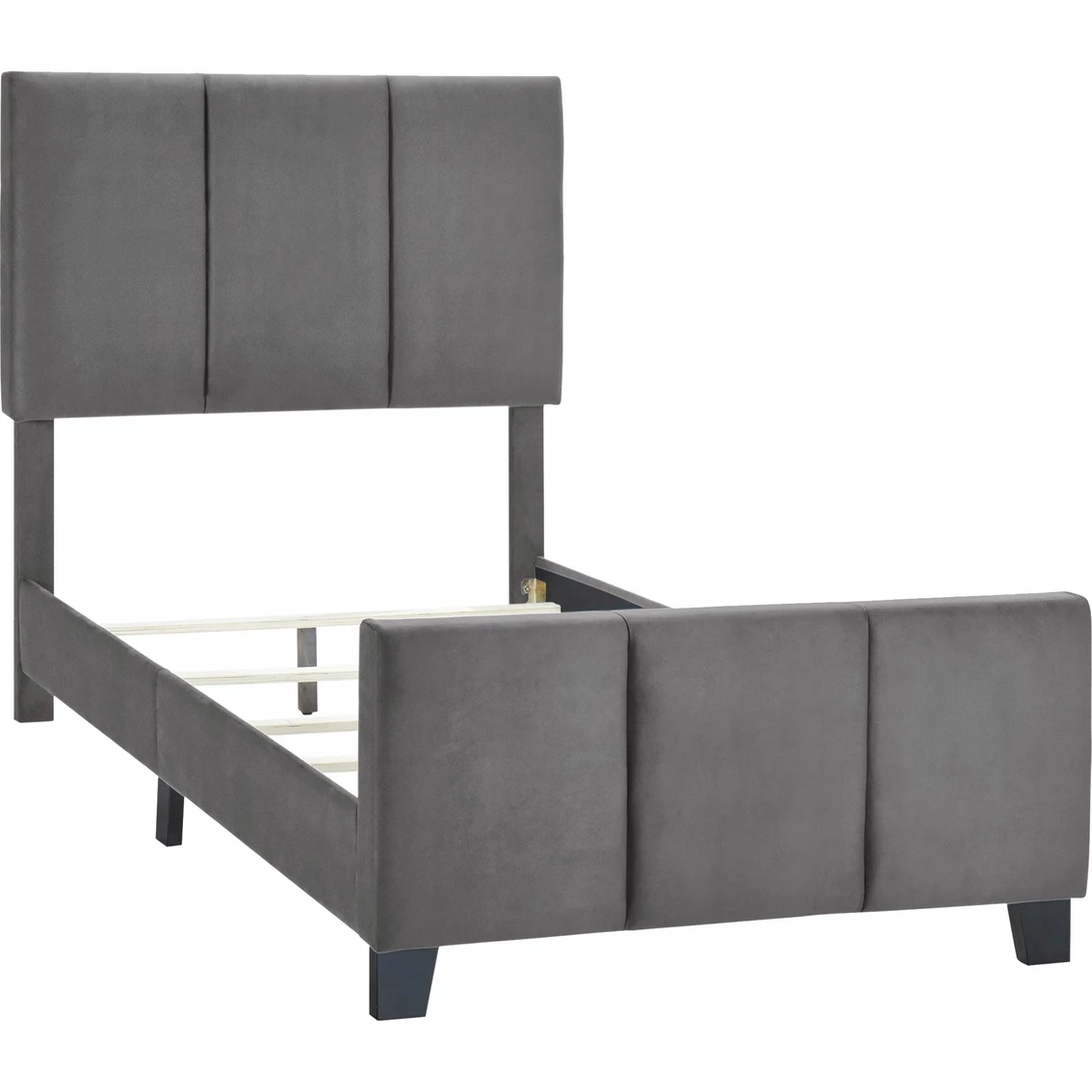 With its transitional silhouette and modern channeling, this upholstered bed from Accentrics Home fits seamlessly into a wide variety of bedroom decors. A sophisticated flannel gray velvet fabric will pull together any modern and contemporary style. This stylish bed requires a box spring, which added height elevates the look. Model: DS-D400-290-2.