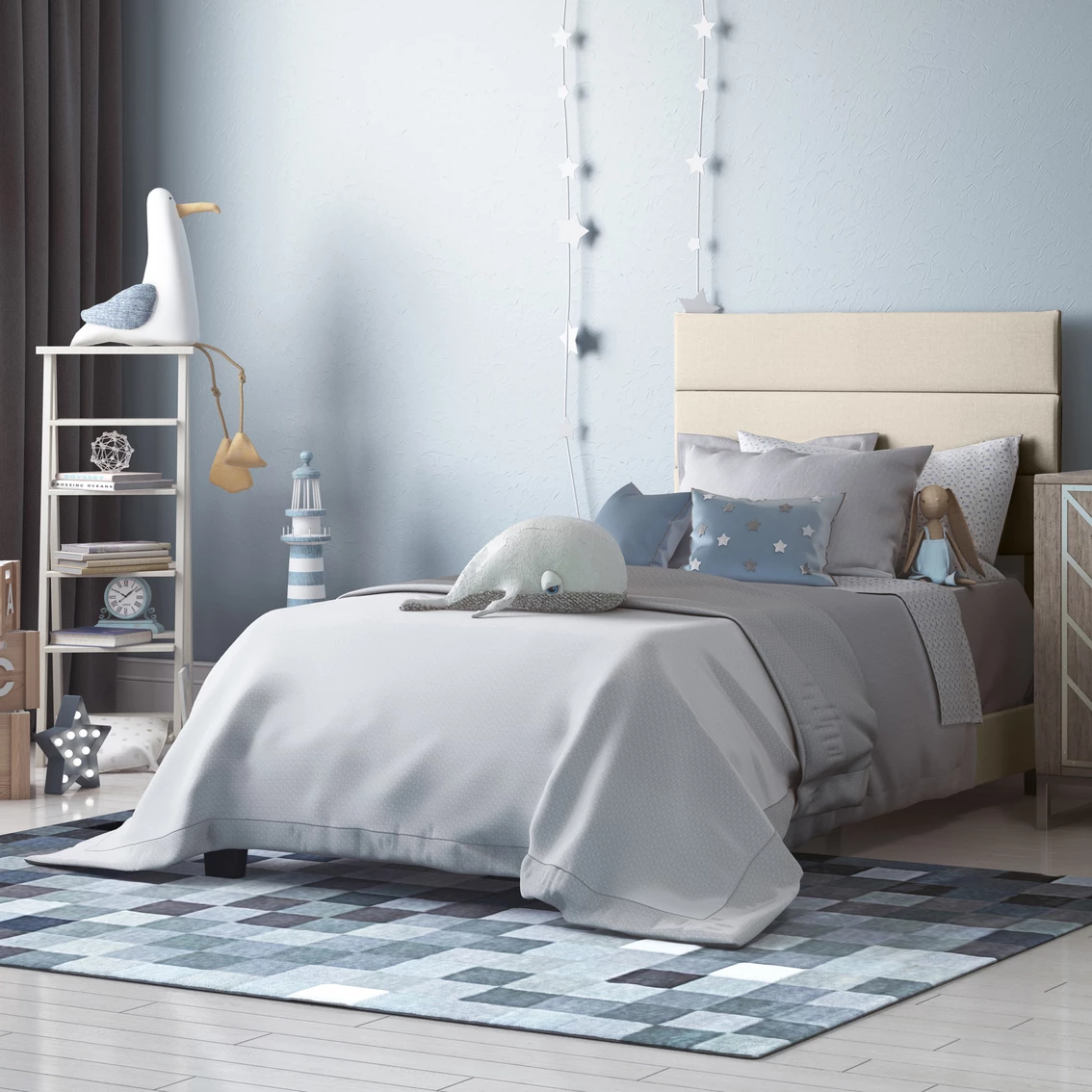 With its transitional silhouette and modern channeling, this upholstered bed from Accentrics Home fits seamlessly into a wide variety of bedroom decors. The sophisticated linen style fabric will pull together any modern and contemporary style. This versatile bed comes in twin, queen and king sizes. Just add your box spring and mattress (both sold separately), and you’re ready to sleep in style. Model: DS-D443.
