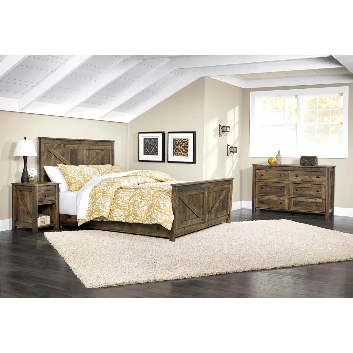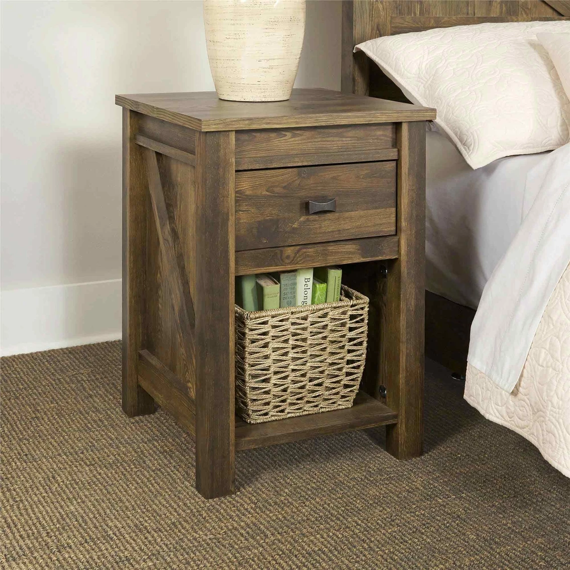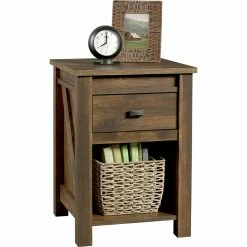 Complete your bedroom with the Altra Farmington Nightstand. Inspired by the farmhouse style, this rustic Nightstand resembles a wooden barn door and adds a unique touch to your space. The century barn pine finish has a weathered appearance that has been further enhanced with oil rubbed bronze pulls to create a vintage style. Not only is this nightstand incredibly stylish, but it’s also very practical, with concealed and open storage to keep your room organized. Model: 5683215PCOM.