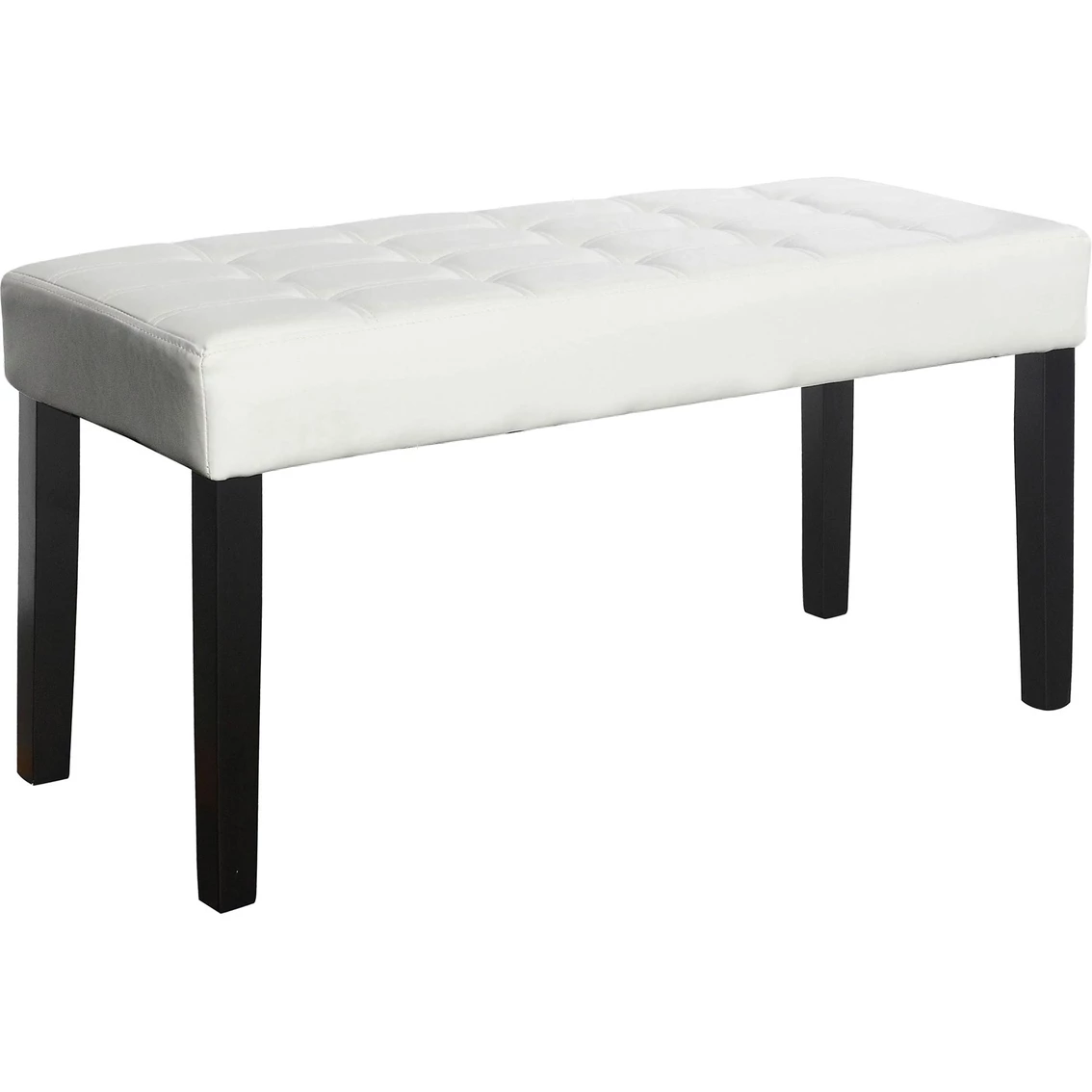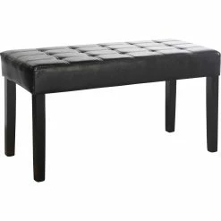 You will enjoy this decorative bench from CorLiving which offers plenty of extra seating space for your home. It features a foam padded surface finished with top stitching and stylish tufting. This multi-functional seat is easy to wipe clean with a damp cloth and provides a practical solution for many areas in your home. The rich leatherette is complimented by Dark Espresso stained Parson styled legs and is a great accent piece in any living space.