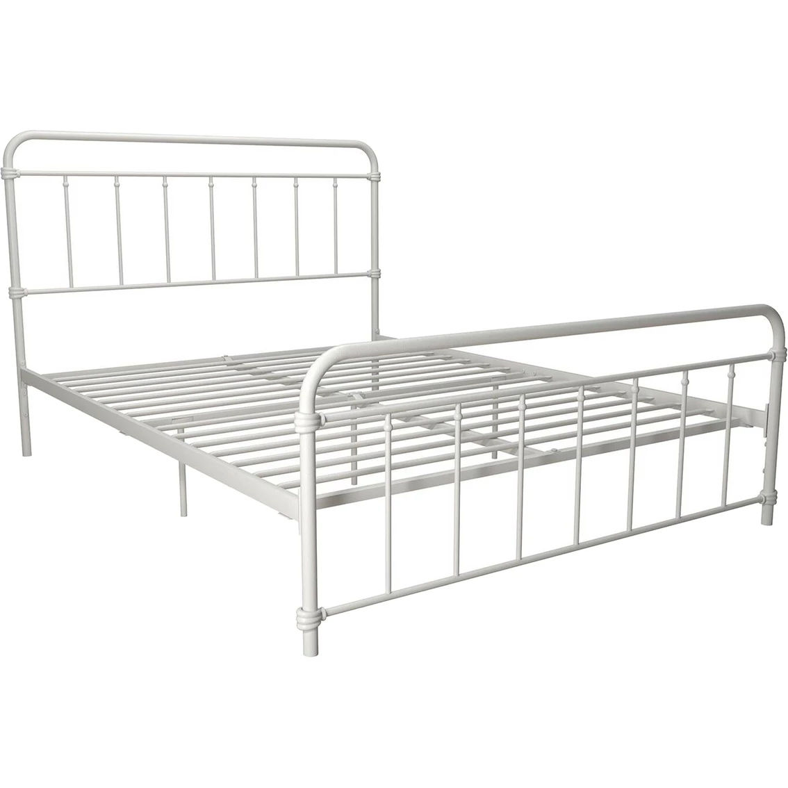 The 1950s were a time of classic lines, simple tastes and solid colors, which DHP has captured here in their stunningly minimalist Wallace bed, made from sturdy metal. No matter your style, this bed is designed to fit your bedroom or provide a fun place to sleep for kids big or small. Liven it up with a colorful duvet and throw pillows, hang a decorative mesh canopy on top to add sophistication, or simply use sheets in solid colors and lined patterns for the full vintage effect. No foundation or box spring needed. The metal slats, center rail and four metal legs offer all the support you need and plenty of comfort all night long. Simply top with a mattress and you’re in for a great night’s sleep. The Wallace Metal bed is available in twin, full or queen sizes in your choice of color. Model: 41170.