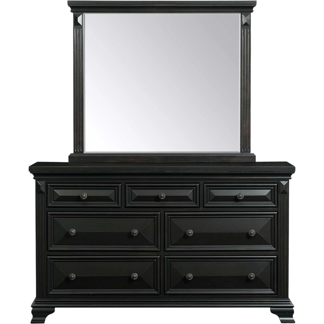 The Calloway Black Mirror from Elements is a show-stopper with its beautiful, beveled wood detailing. The black lacquer, 13-step finish provides warmth and comfort within any bedroom. Model: CY600MR.