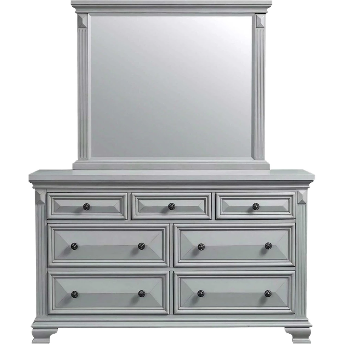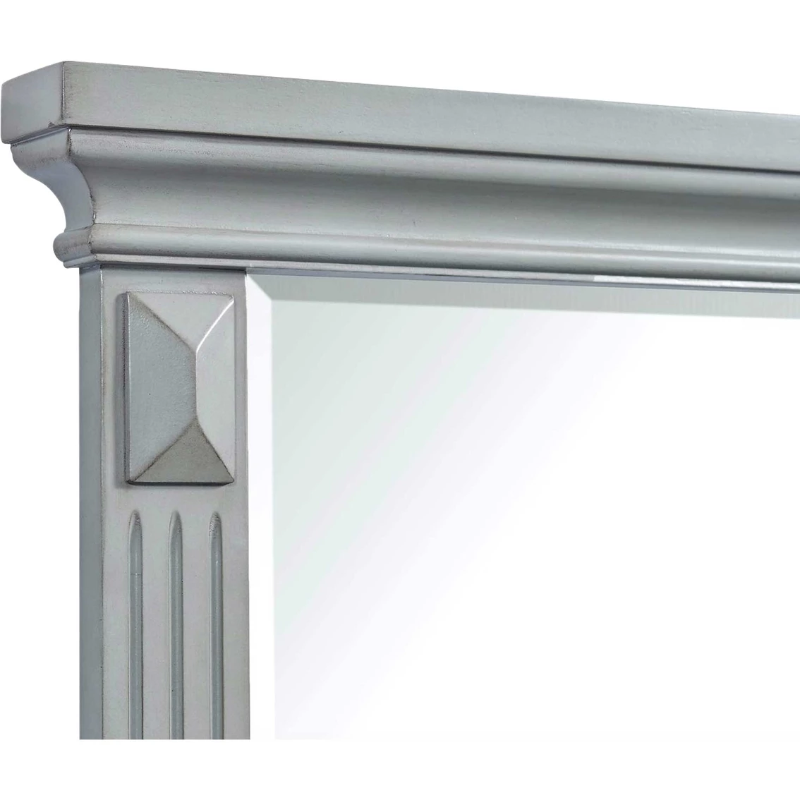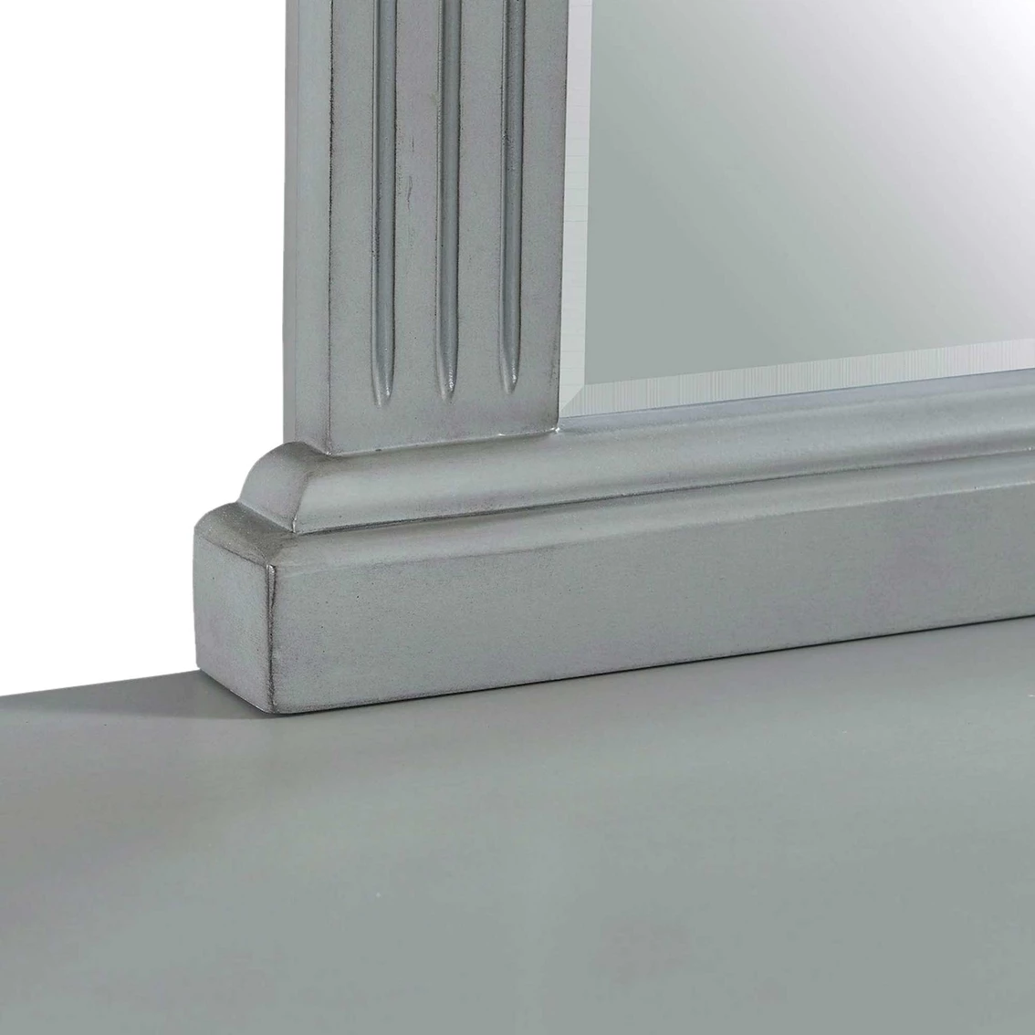 The Calloway Grey Mirror from Elements is a show-stopper with its beautiful, beveled wood detailing. The grey lacquer, 13-step finish provides warmth and comfort within any bedroom. Model: CY300MR.