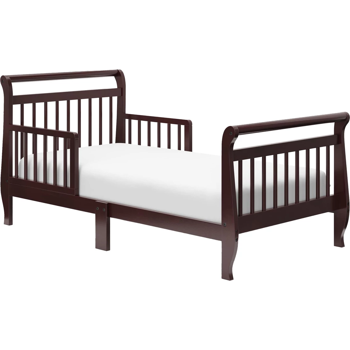 With its timeless charm and traditional sleigh-style design, the Graco Classic Sleigh Toddler Bed with Guardrails is easy to match with any style of kids bedroom. Equipped with toddler guardrails for each side of the bed, and designed to fit any standard full-size crib and toddler mattress, the Graco Classic Sleigh Toddler Bed with Guardrails is ready to support your child’s transition from the crib to their first toddler bed. The Sleigh is Greenguard Gold Certified — Certified products are screened for more than 10,000 chemicals and VOCs known to pollute indoor air.