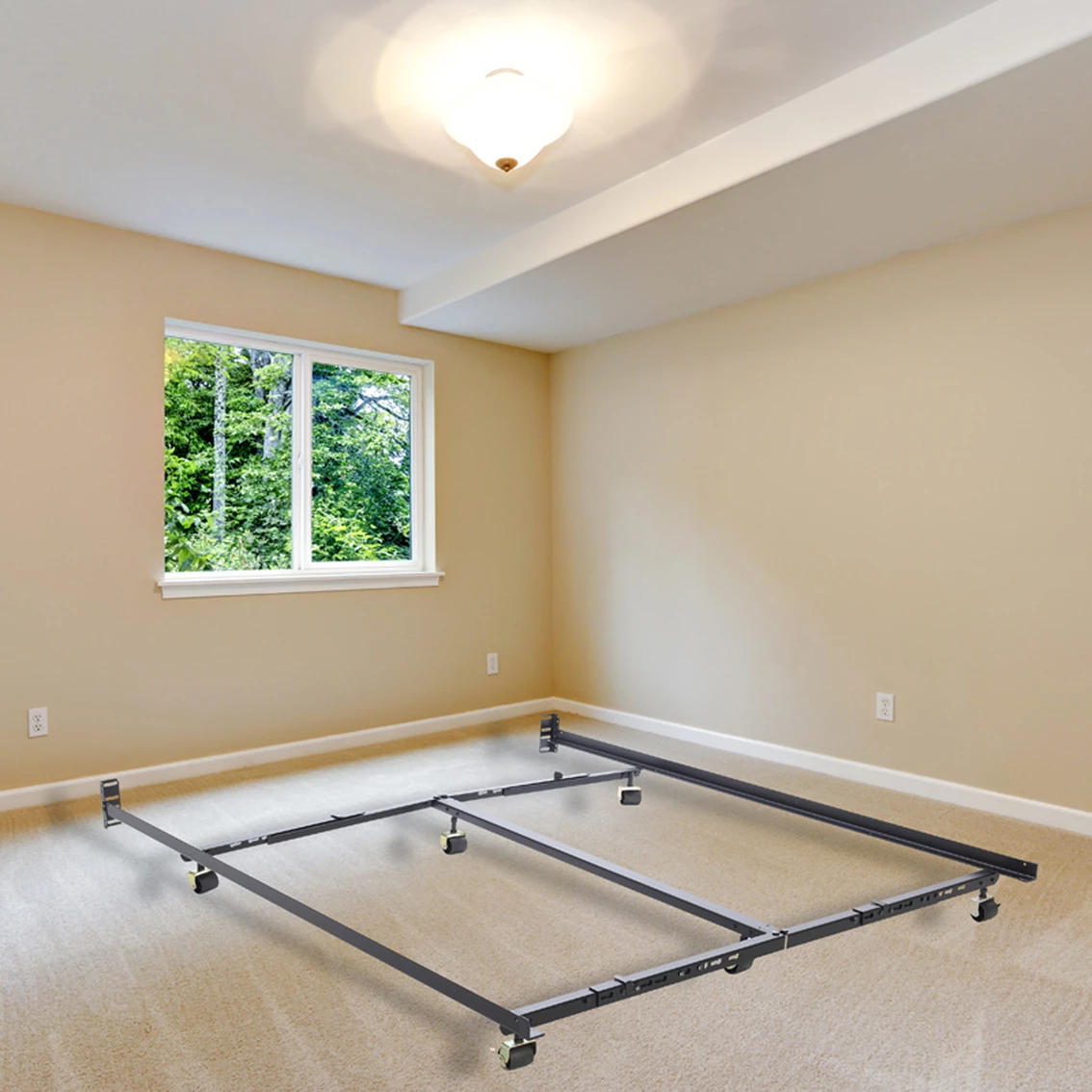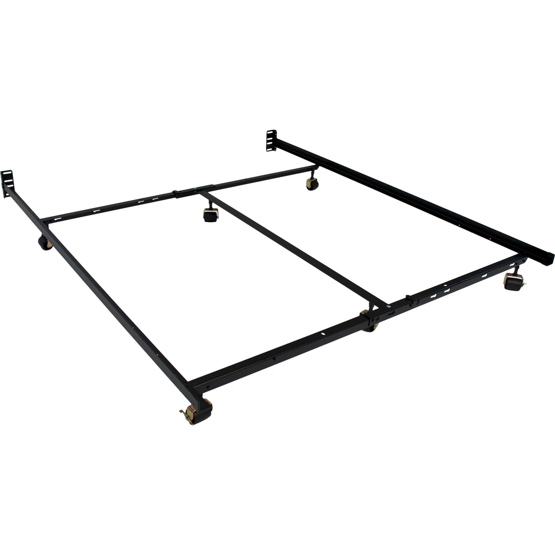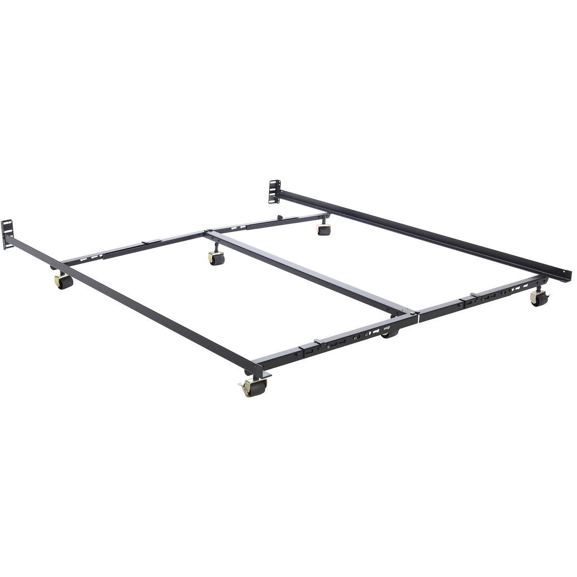 This Low-Profile Premium Lev-R-Lock adjustable bed frame from Hollywood Bed delivers the structure and support your bed deserves while reducing the height of your bedding set. The frame easily adjusts to fit any size mattress from Twin to Eastern King, so you can keep the same frame if you decide to buy a different size mattress. With durable steel construction, this metal bed frame supports up to 3,000 lb. Easy assembly, no tools are required.
