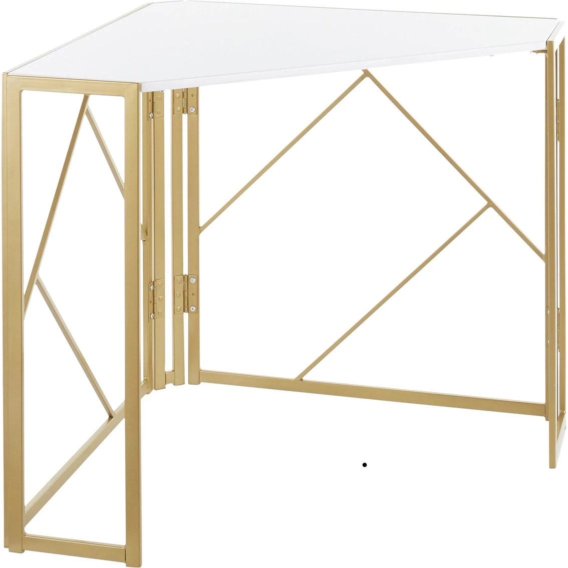 With its pleasant design and modern lines, the Folia Corner Desk by LumiSource is a unique statement in any space. The Folia features a goldtone metal frame and white wood top, sure to add a touch of glamour to your surroundings. Foldable for easy storage and mobility. Some Assembly Required (Tools Included).