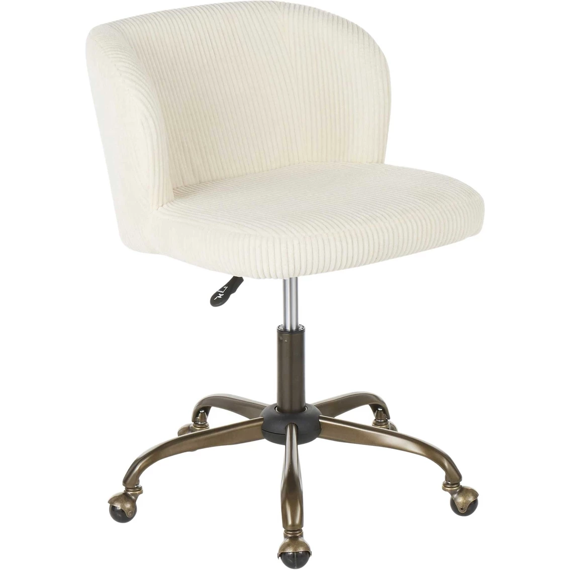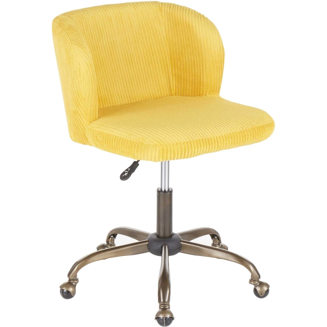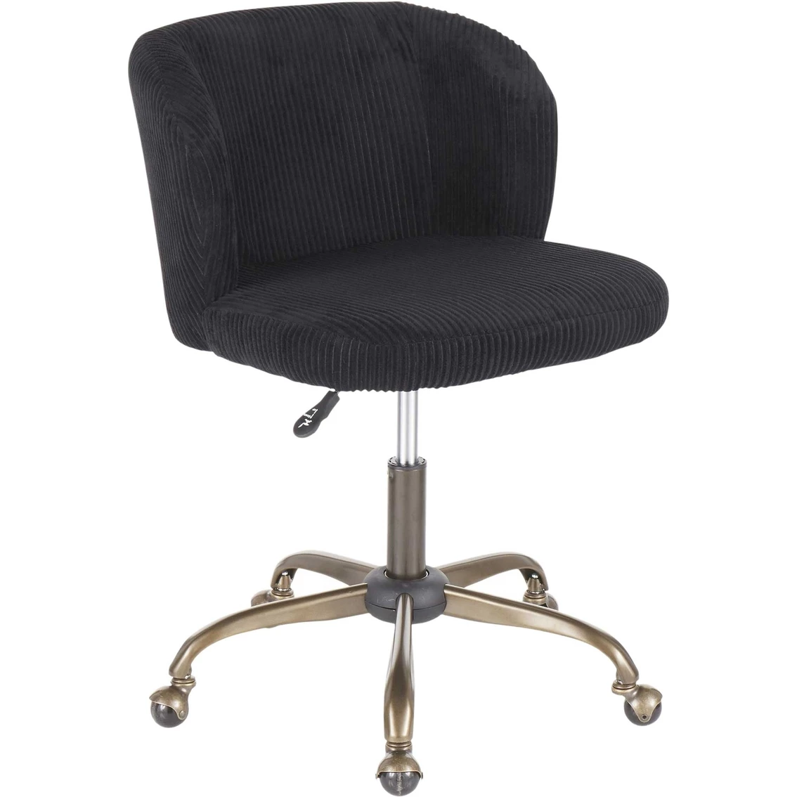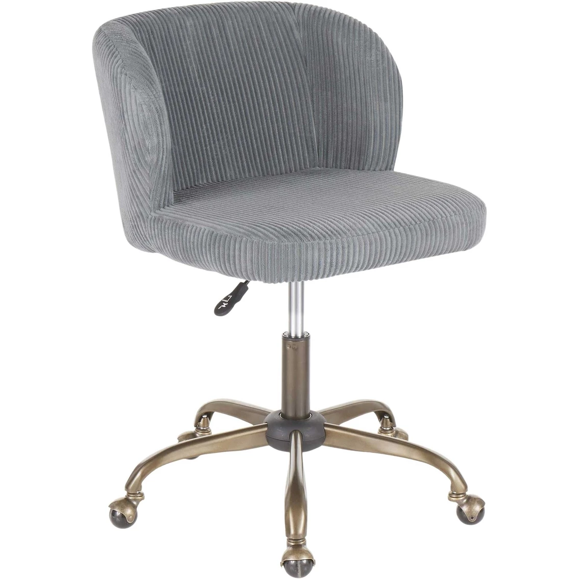 Spruce up your home office with the Fran Task Chair by LumiSource. Featuring a sophisticated corduroy fabric upholstery that will tie in perfectly with your contemporary decor. This ultra-comfortable padded bucket seat is complemented by an antique 5-star metal base that is adjustable to your preferred height.