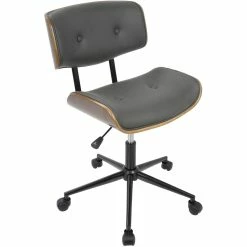 Bring the sophistication to your business or home office with the LumiSource Lombardi Office Chair. Enjoy the plush, tufted faux leather seats over bent wood, providing you with optimal comfort and support. The LumiSource Lombardi Office Chair adjusts to your preferred height and swivels for 360 degrees of movement. Model: OC-JY-LMB WL-GY.