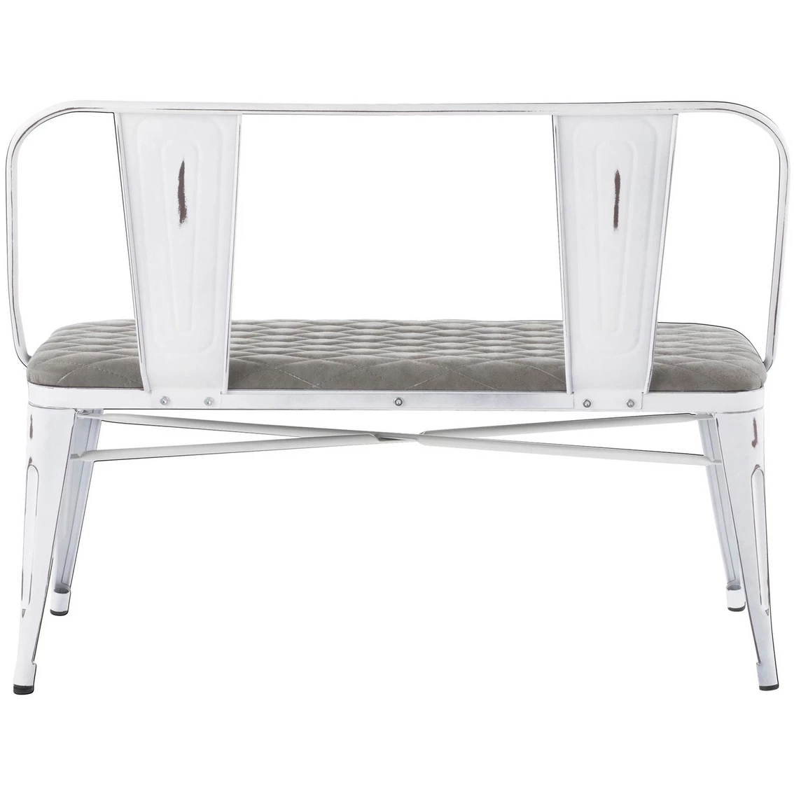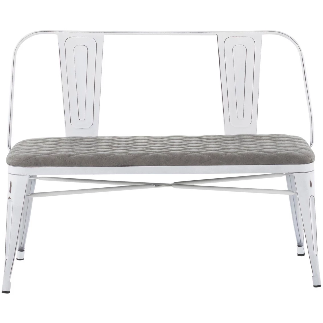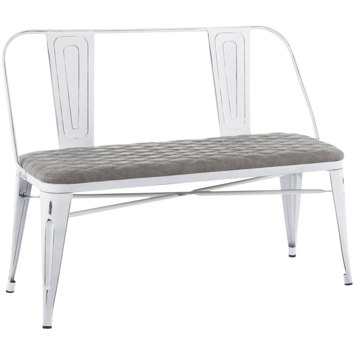 The versatile Oregon Upholstered Bench from LumiSource seats two comfortably and can be used as a dining, entryway or bedroom bench. The industrial-style design includes sturdy metal construction and an upholstered seat in grey cowboy fabric. Model: BC-ORUP VW-GY.
