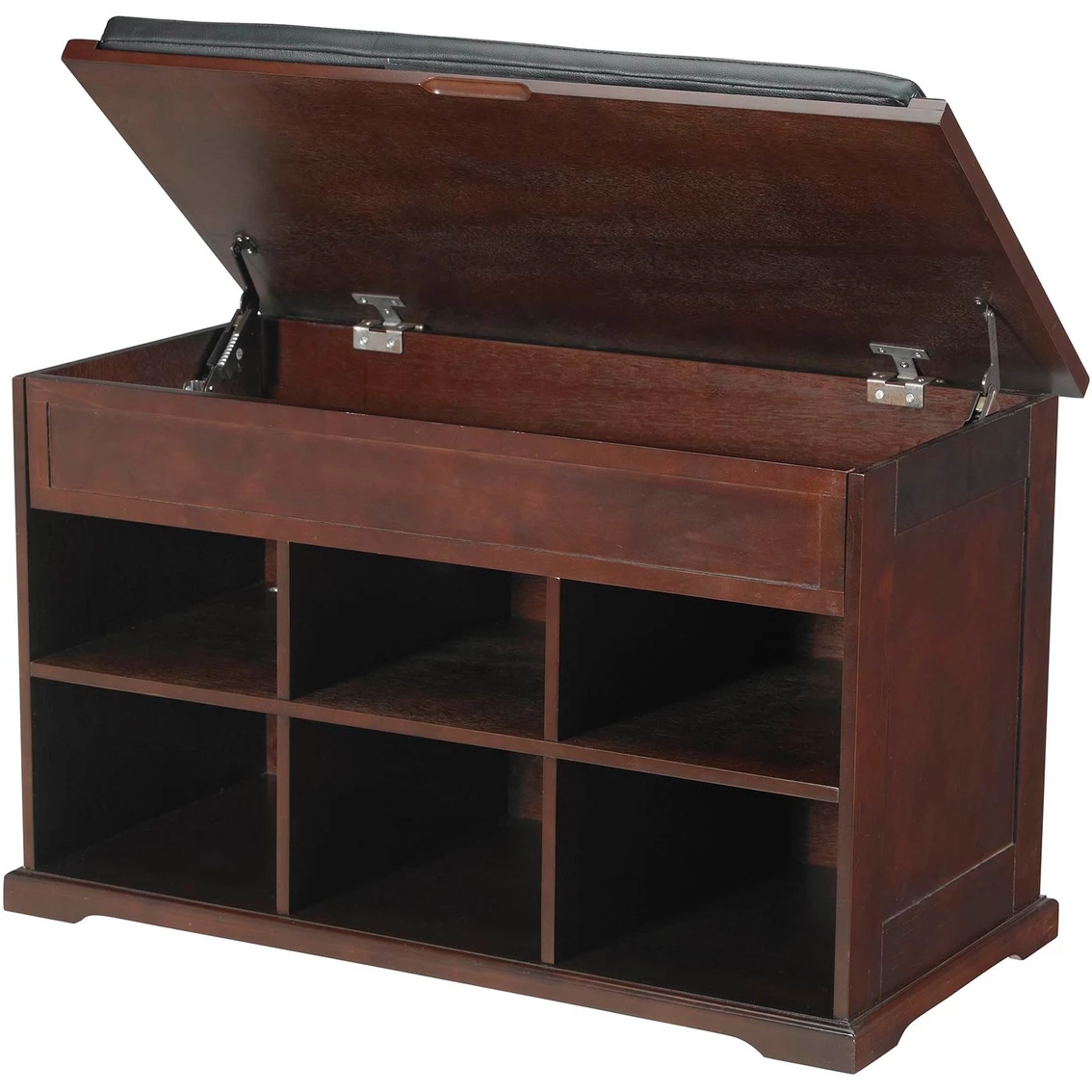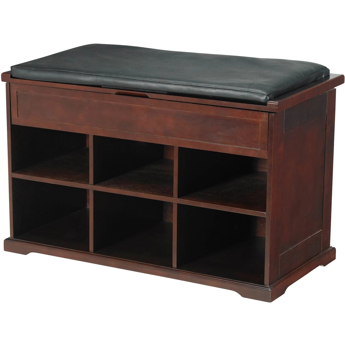 No more piles of shoes by the door. This stylish and unique shoes bench from Northbeam is a perfect addition to your entry way, bedroom and/or walk-in closet. The bench comes with a lift up dark espresso cushioned seat with additional storage underneath to hide away gloves, scarves and hats. You can easily store and accommodate 6 to 12 pairs of shoes. Cushioned lid comes with spring loaded hinges for easy and safe use. Model: BCH0031721800.