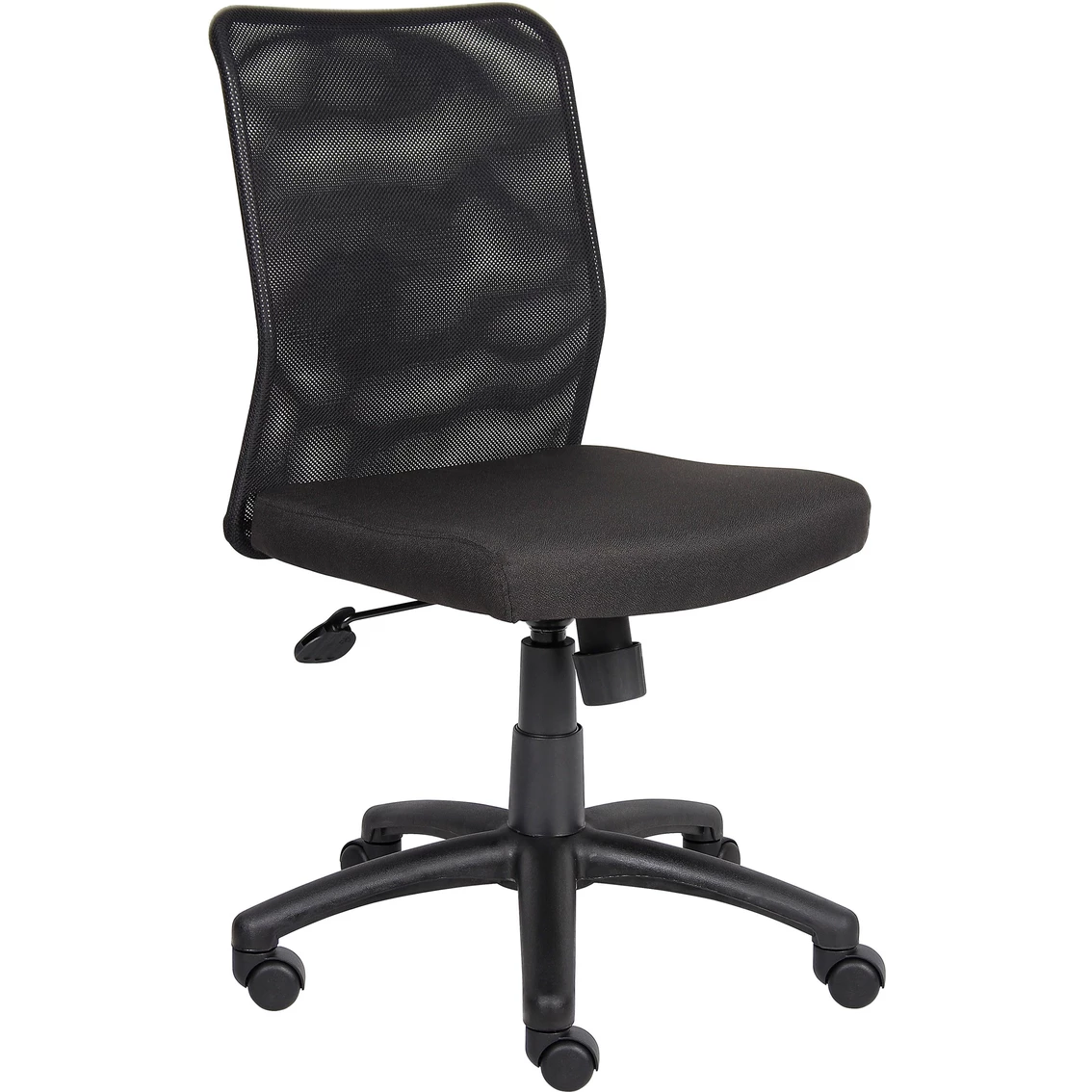 This Budget Mesh Task Chair by Presidential Seating comes with an breathable mesh back and mesh fabric seat with padding designed will help keep you cool and comfortable during extended periods of work. The adjustable tilt tension control allows you to customize the optimal angle at which you sit. It has an upright locking position feature providing comfortable back support. The pneumatic adjustable gas lift allows for easy seat height adjustment to help you find the personalized sitting style that suits you and your work environment. Large 27 in. black nylon base provides added stability. Hooded double-wheel casters make it easy to move and shift directions. Model: B6105.