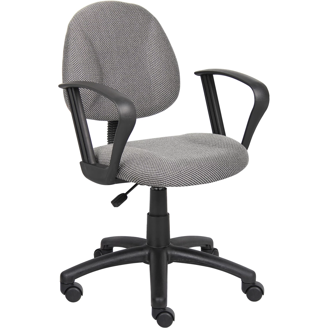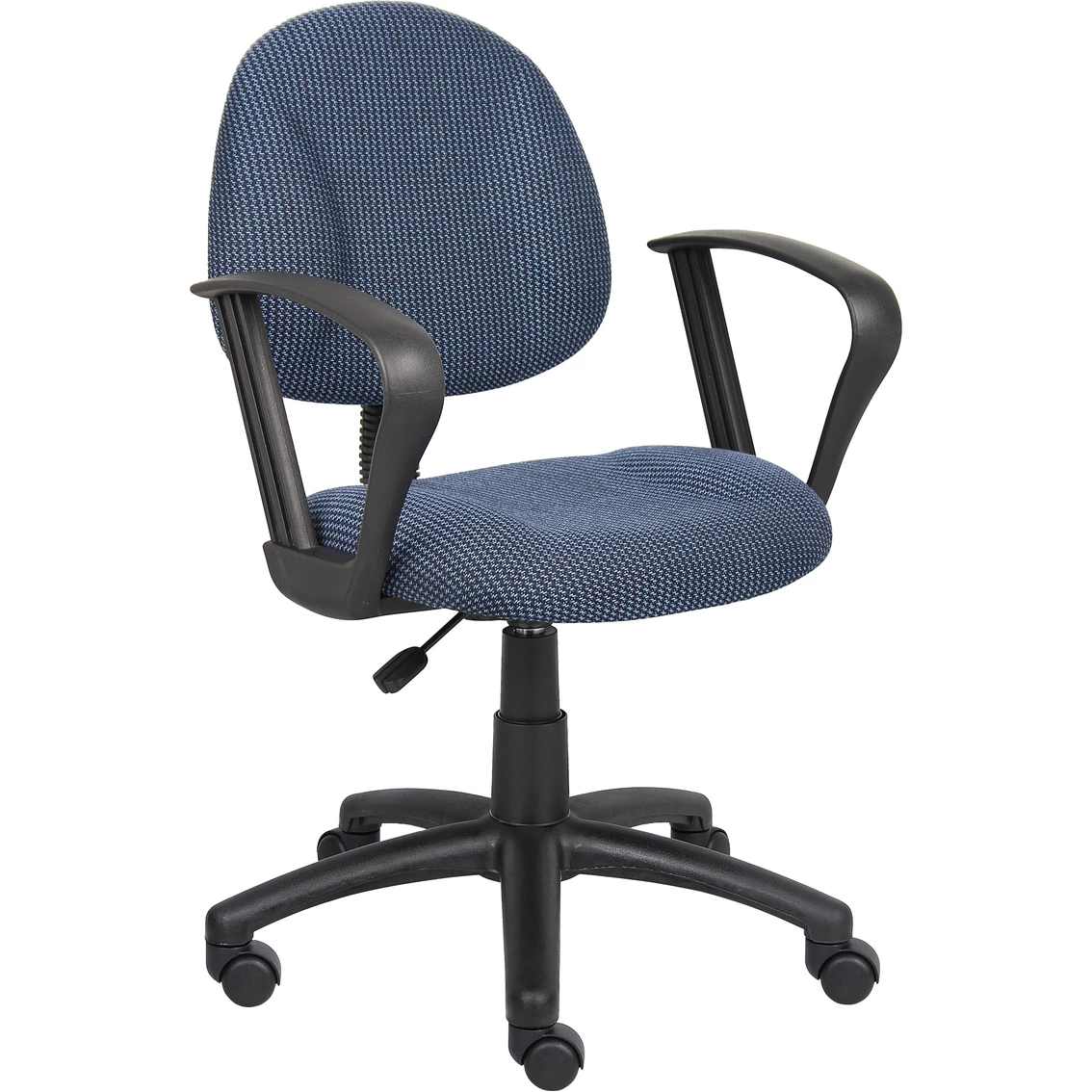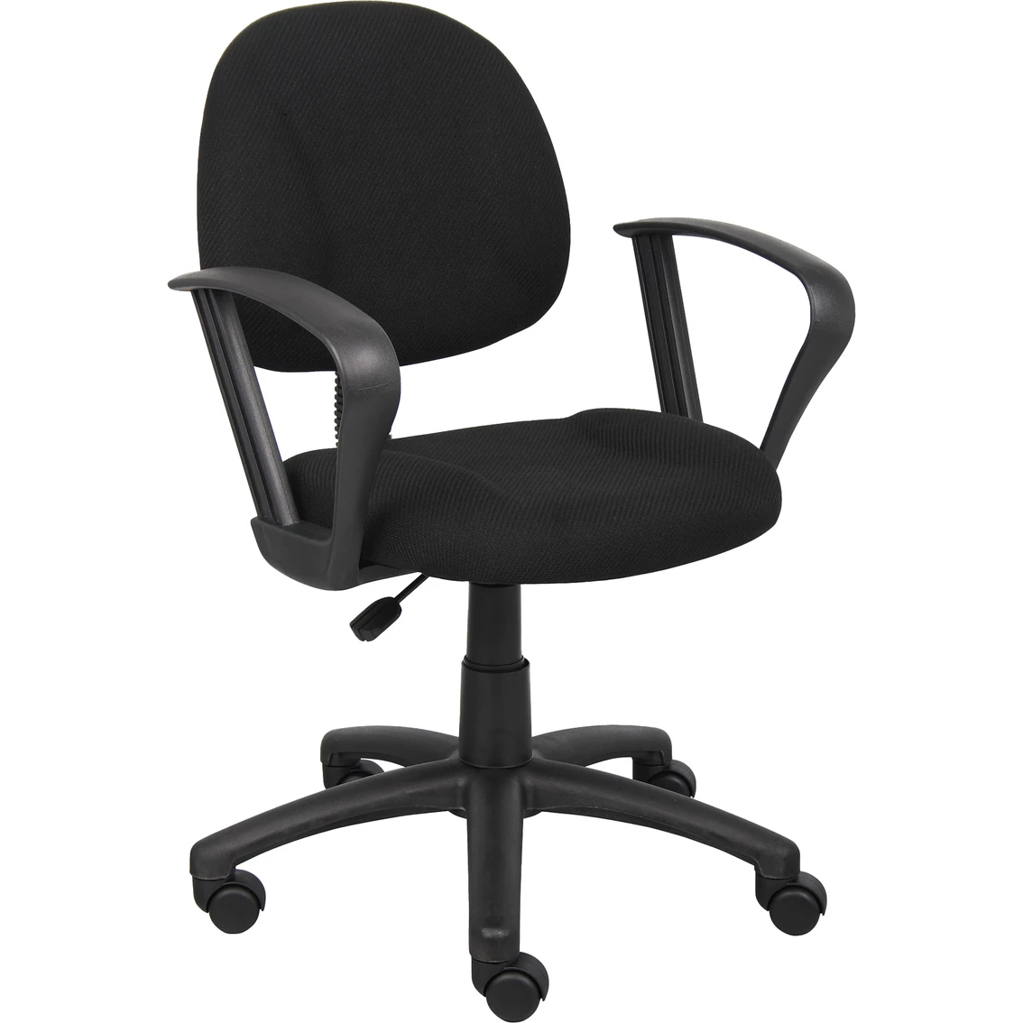 This Presidential Seating Fabric Deluxe Posture Chair comes with a thick padded seat and back with built in lumbar support. It has an adjustable back depth that can be easily customized for your personal needs. The pneumatic adjustable gas lift allows for easy seat height adjustment to help you find the personalized sitting style that suits you and your work environment. The five star nylon base allows for smooth movement and stability. The hooded double wheel casters make it easy to move and shift directions while the loop arms make for comfortable and natural arm rests. Model: B317-BK.