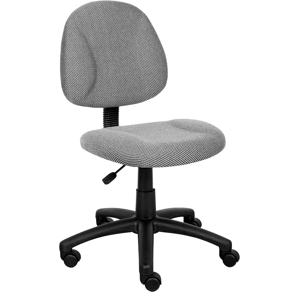 This Fabric Deluxe Posture Chair from Presidential Seating comes with a thick padded seat and back with built in lumbar support. Adjustable back depth can be easily customized for your personal needs. Pneumatic adjustable gas lift allows for easy seat height adjustment to help you find the personalized sitting style that suits you and your work environment. The five-star nylon base allows for smooth movement and stability. Hooded double-wheel casters make it easy to move and shift directions. Model: B315.