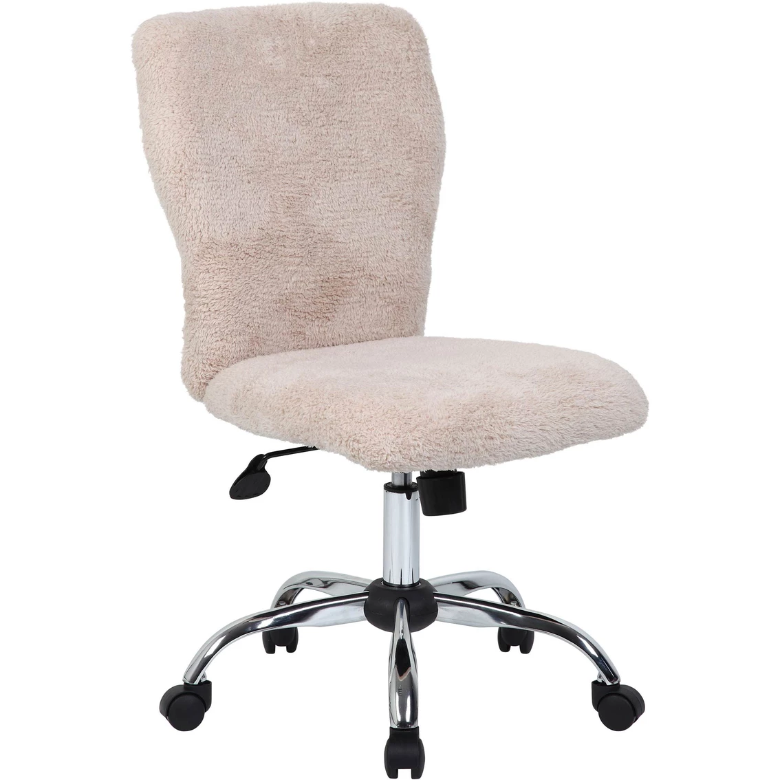 Furry Sherpa fabric chair is perfect for any room in the house or teen bedroom. It has a 25 in. chrome base. Its features include upright locking position, pneumatic gas lift seat height adjustment, adjustable tilt tension control and hooded double wheel casters. Imported from China.
