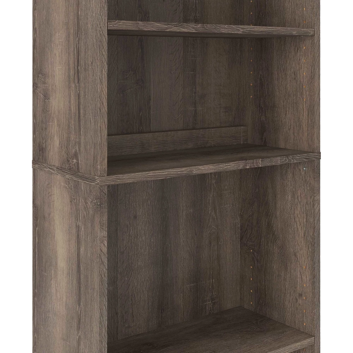 Clean-lined and contemporary — but far from stark — the Arlenbry home office bookcase from Signature Design by Ashley is a fresh style awakening. Sleek scale makes it a natural fit for smaller spaces. Effortlessly combining modern farmhouse design with urban attitude, the replicated weathered oak grain plays perfectly with the chic yet earthy aesthetic. Assembly required; instructions included for ease of assembly. Model: H275-17.