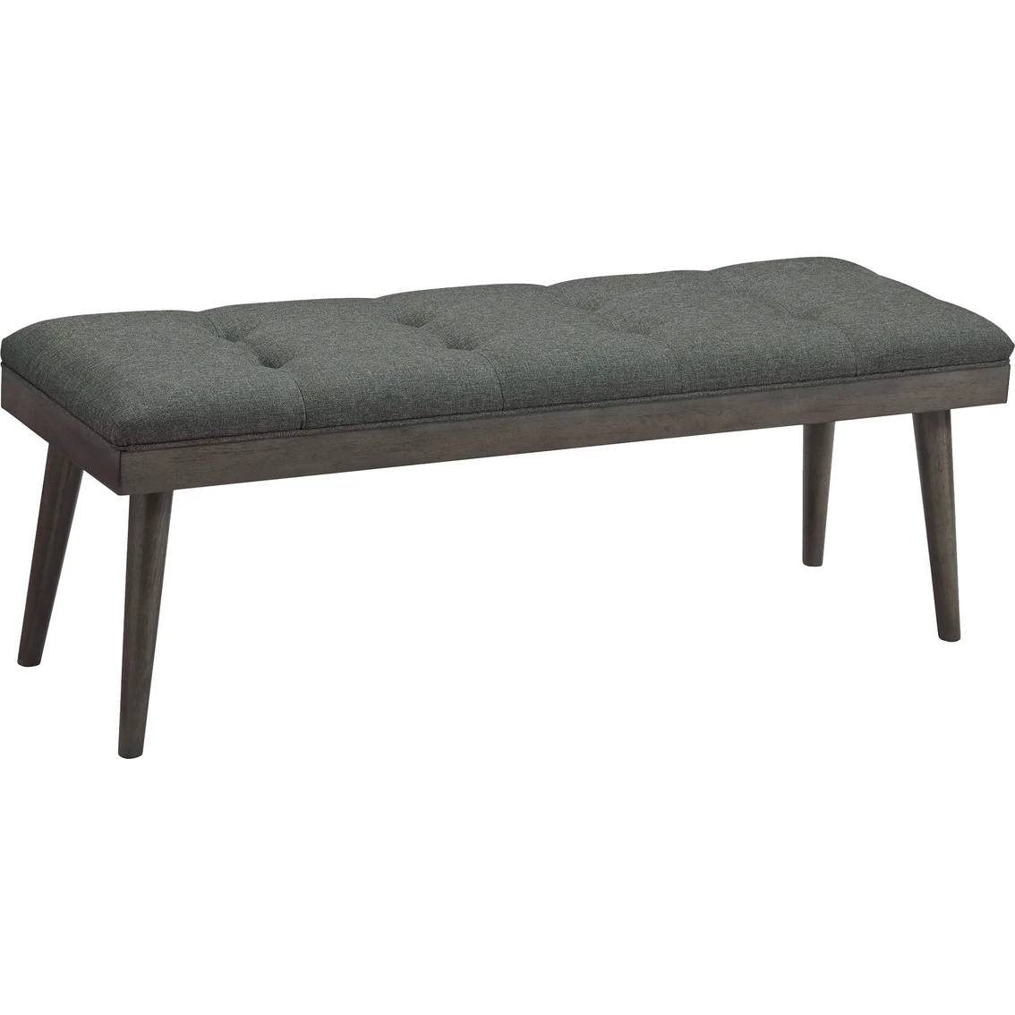 Mid-century sensibility shows up well in the Signature Design by Ashley Ashlock bench. The tufted gray upholstery is buttoned up like a dress shirt over the tapered wood legs and apron. Tuck this modern gem into your entryway for a cool seat while removing your shoes or set it at the end of your bed for a touch of vintage style.