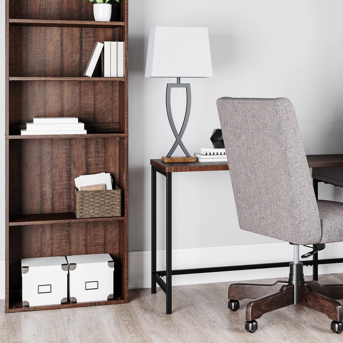 Whether you lean towards modern farmhouse or urban industrial design, the clean-lined profile of the Signature Design by Ashley Camiburg Collection Bookcase is an essential component to any well-equipped home office. Sleek and slim, it’s just enough furniture to complete your space without overloading your look. Featured item is bookcase only; images show options. Assembly required; instructions included for ease of assembly. Model: H283-17.