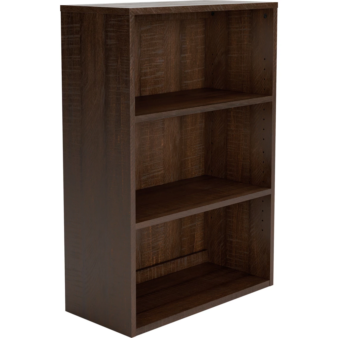 Organize your life and elevate your style with the Signature Design by Ashley Camiburg Collection Medium Bookcase. Merging clean, crisp lines with a replicated rough sawn wood grain, it’s a simply striking example of modern farmhouse design done right. This farmhouse fresh bookcase includes two adjustable shelves to accommodate your needs. Be it in your home office, family room or guest room, what a beautiful way to put books and home accents on display. Featured item is bookcase only; images show options. Model: H283-16.