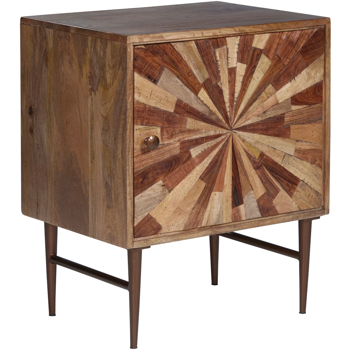Star attraction. Wowing with an intricate starburst pattern that’s true artistry, this accent cabinet from Signature Design by Ashley is a shining example of clean, contemporary style with a mid-century inspired twist. Whether gracing an entryway or serving as a standout nightstand, this designer accent cabinet is loaded with possibilities. Model: A4000266.