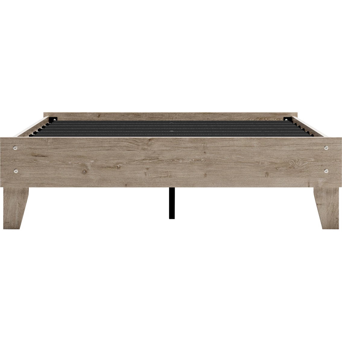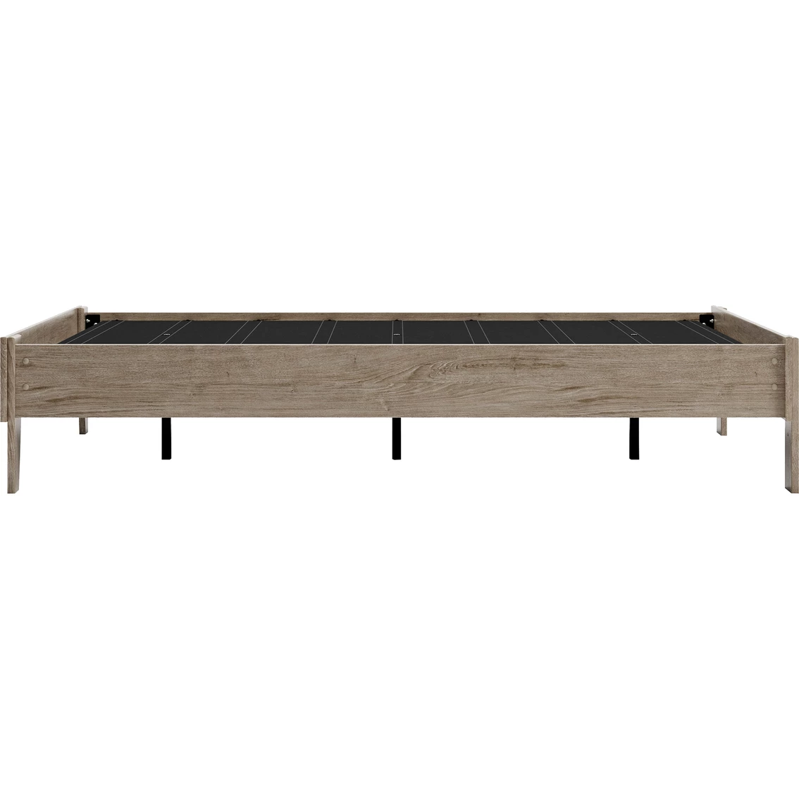 Bringing big style to small living areas, the Signature Design by Ashley Oliah Platform Bed is a smart, space-saving choice for those with an eye for contemporary design. Clean-lined profile with understated refinements creates such a simple silhouette that works in so many settings. Includes footboard, rails and platform (headboard not included). No additional foundation/box spring needed. Mattress available, sold separately. Featured item is platform bed only — images show options. Assembled dimensions: twin 41 x 78 x 15 in.; full 56 x 78 x 15 in.; queen 63.39 x 81.65 x 15 in. Model: EB2270-113.