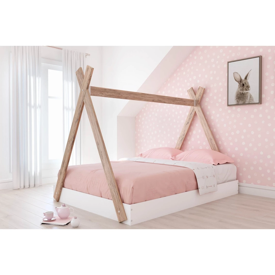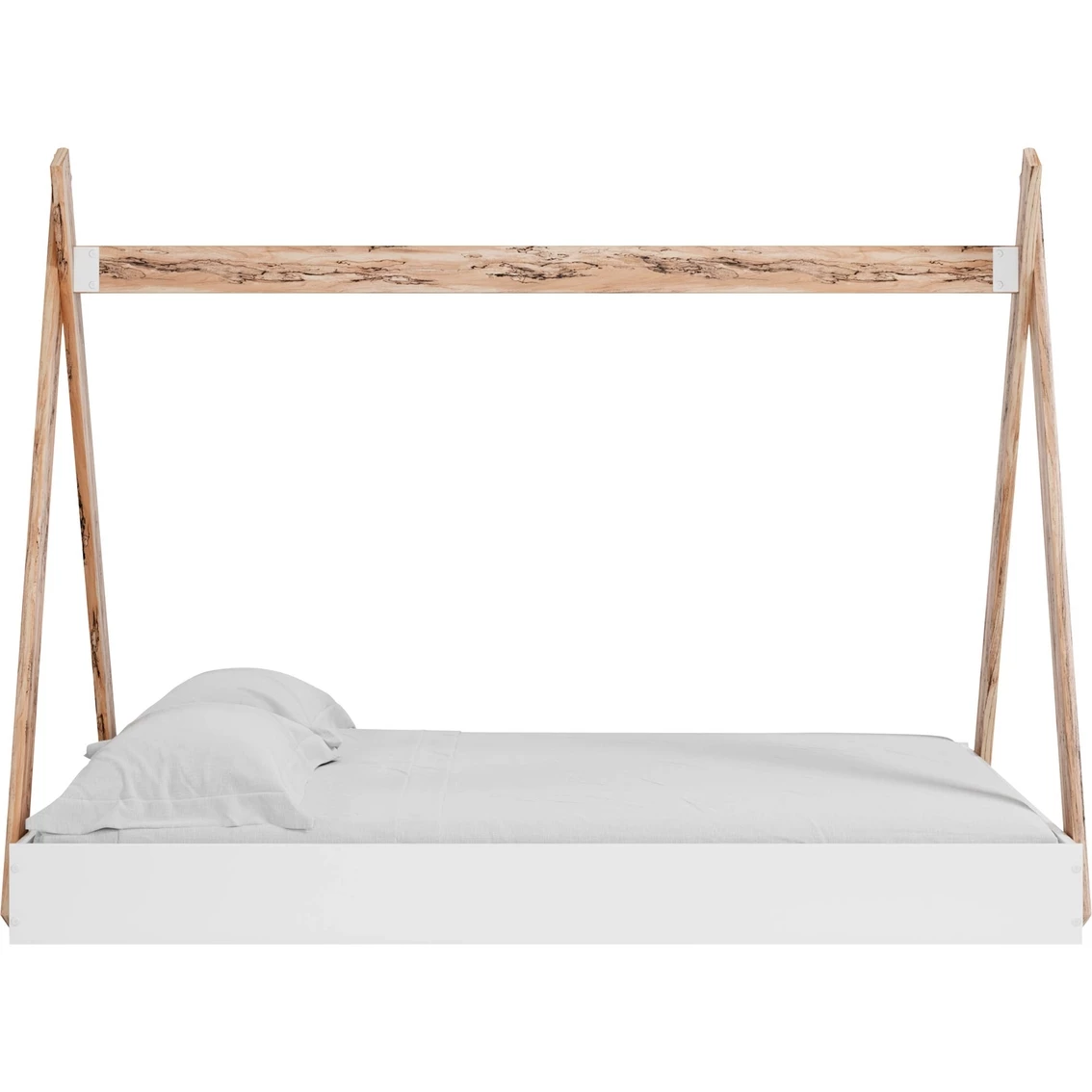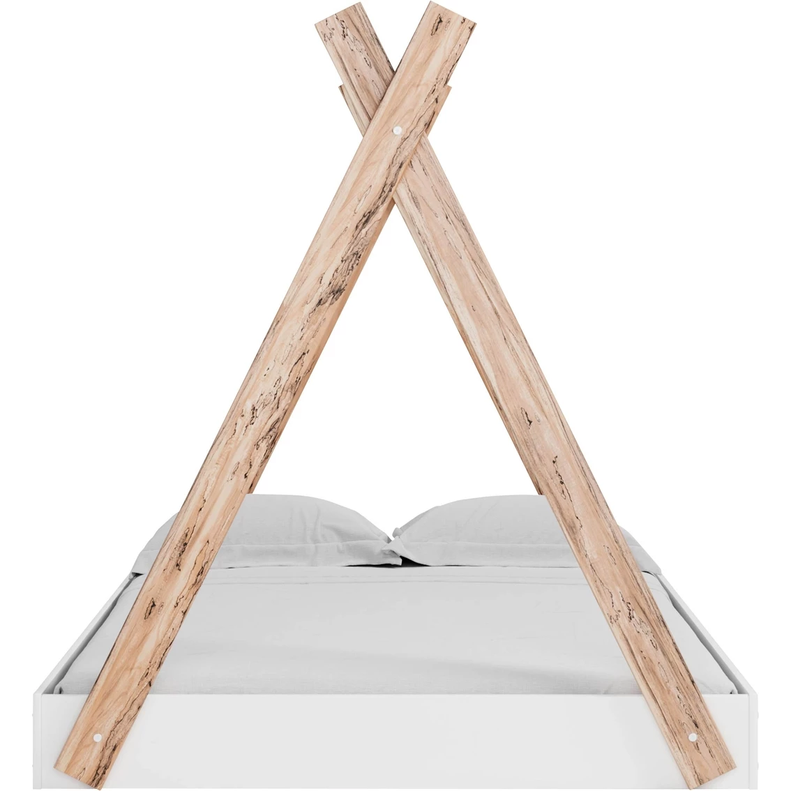Adventure awaits with the Ready-To-Assemble Piperton tent complete bed from Signature Design by Ashley in a box. The effortless blend of contemporary and casual styles creates an expressive two-tone look in matte white and replicated sugarberry wood grain pattern. This complete bed in a box requires no additional foundation, making it a functional, yet unique, addition to your home. Mattress available; sold separately. Featured item is tend bed only; images show options. Ships in 1 carton. Assembly required. Model: EB1221-122.
