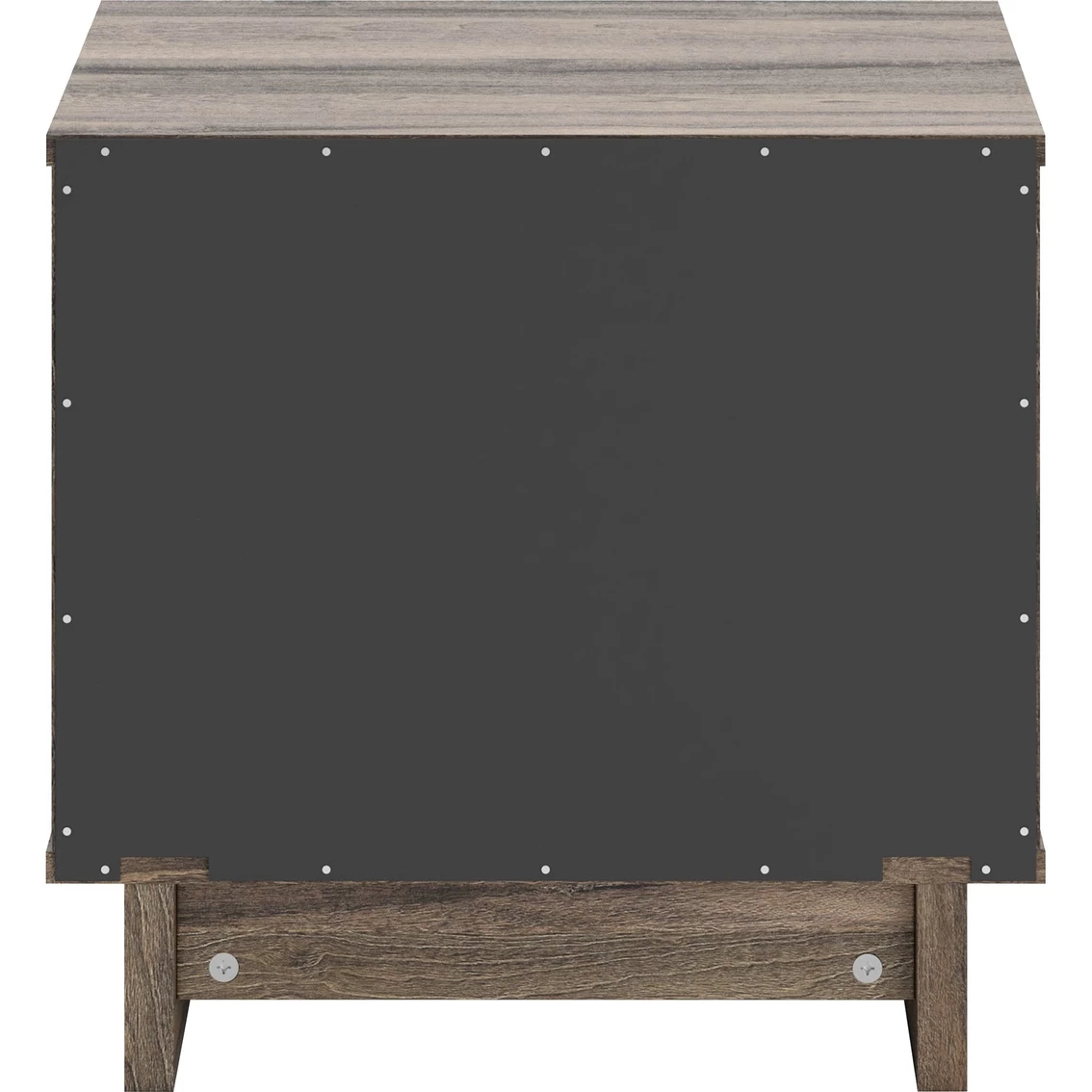 Your modern sanctuary is within reach. The subtle form of the Signature Design by Ashley Ready-To-Assemble Shallifer Nightstand is accented with a low profile base. Its weathered brown finish is complemented with refined champagne-colored handles. Nightstand features one smooth-gliding drawer with ball-bearing glides. An open shelf provides additional bedside storage. Featured item is nightstand only, images show options. Ships in 1 carton. Assembly required. Model: EB1104-291.