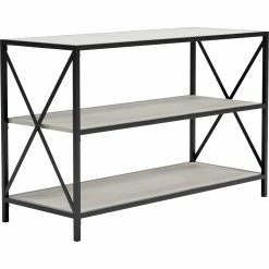 Love an urban farmhouse aesthetic? Make it work to your advantage with the beautifully styled Ready to Assemble Bayflynn home office bookcase. A simply striking choice in home office furniture, it has an unmistakable farmhouse feel thanks to a whitewashed finish and gunmetal accents. Be it in the home office, family room, dining area or entryway, this multipurpose storage and display bookcase is sure to be put to good use. Featured item is desk only; images may show options. Assembly required. Model: H288-60.