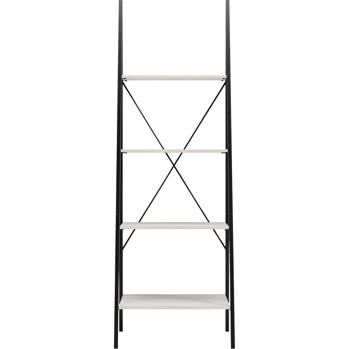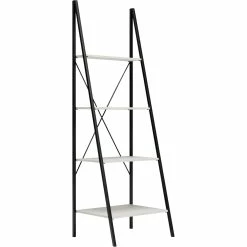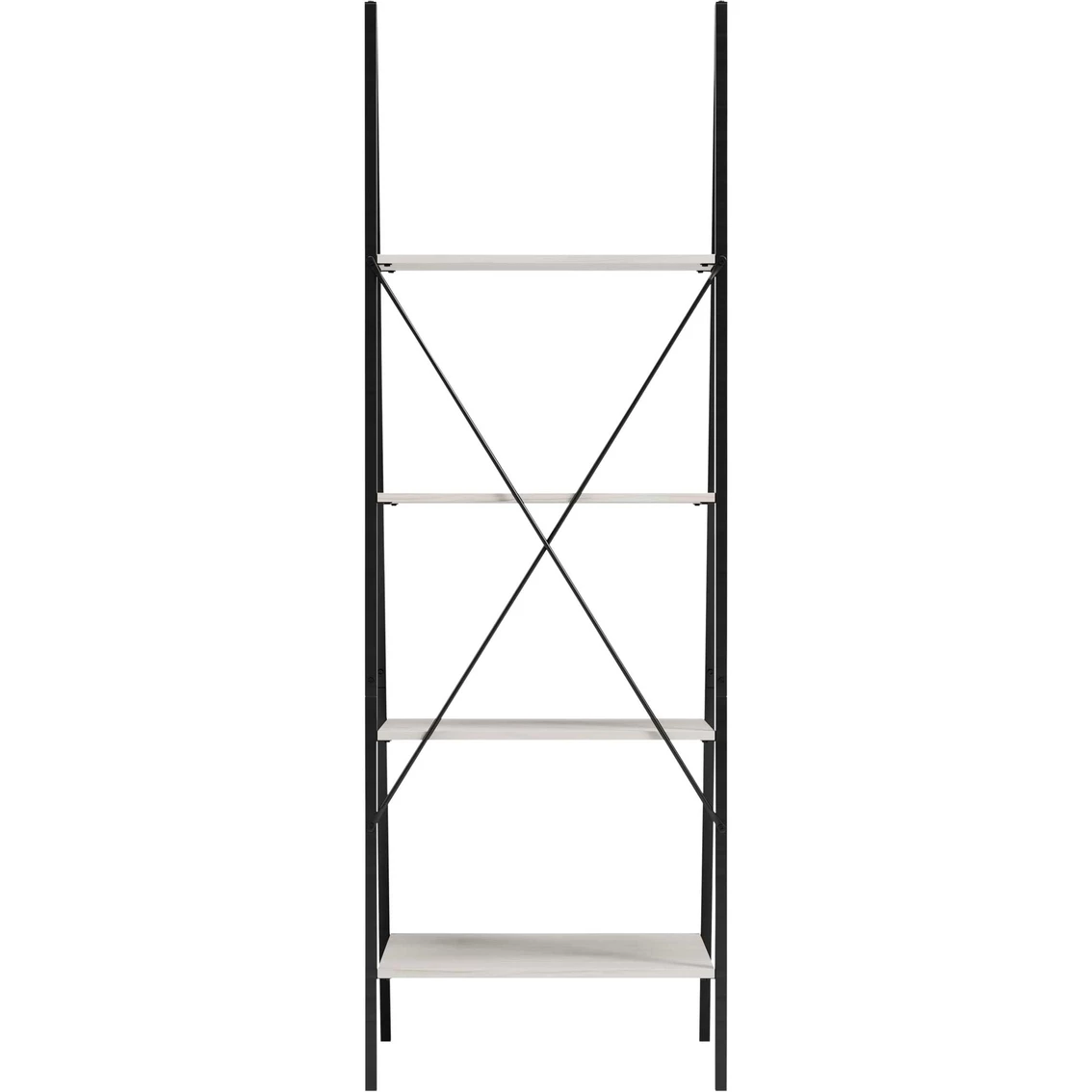 Love a clean, uncluttered aesthetic? Make it work to your advantage with the Ready to Assemble Bayflynn bookcase. A simply striking choice in home office furniture, it has an unmistakable fresh feel thanks to a whitewashed finish and gunmetal frame. Four tiers offer loads of possibilities for storage and display space. This high-style element is welcome everywhere from the home office to the living room. Featured item is bookcase only; images may show options. Assembly required. Model: H288-17.
