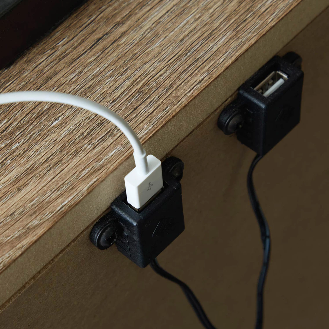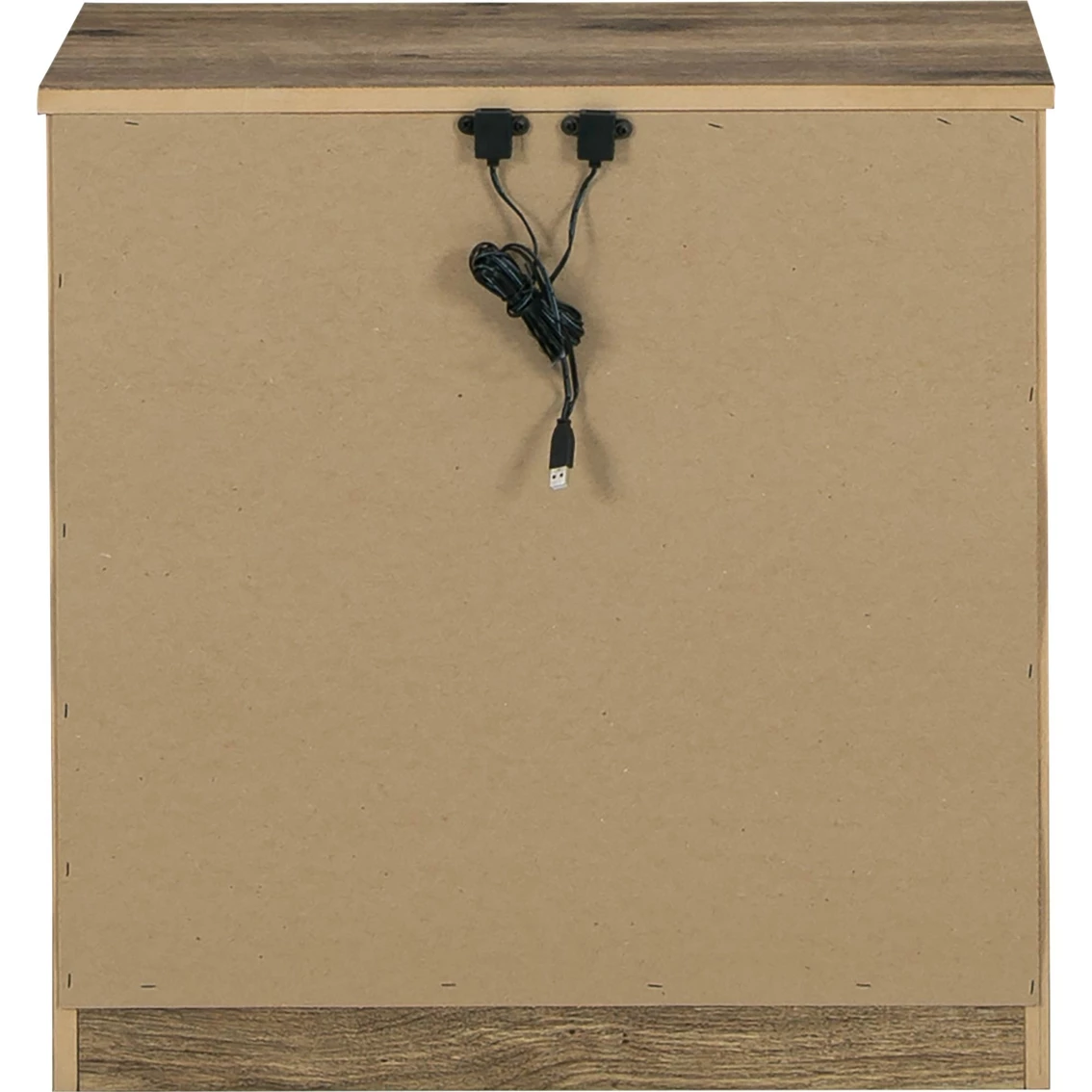 Simple dark bronze-tone hardware lends a hearty sensibility to the smooth-gliding drawers. And with dual USB charging ports, this nightstand keeps up with your high-tech lifestyle. Expertly made with engineered wood (MDF/particleboard/plywood) for the right balance of affordability and durability.