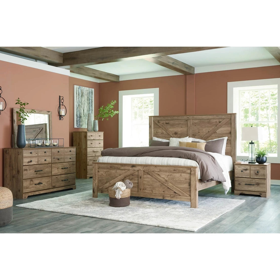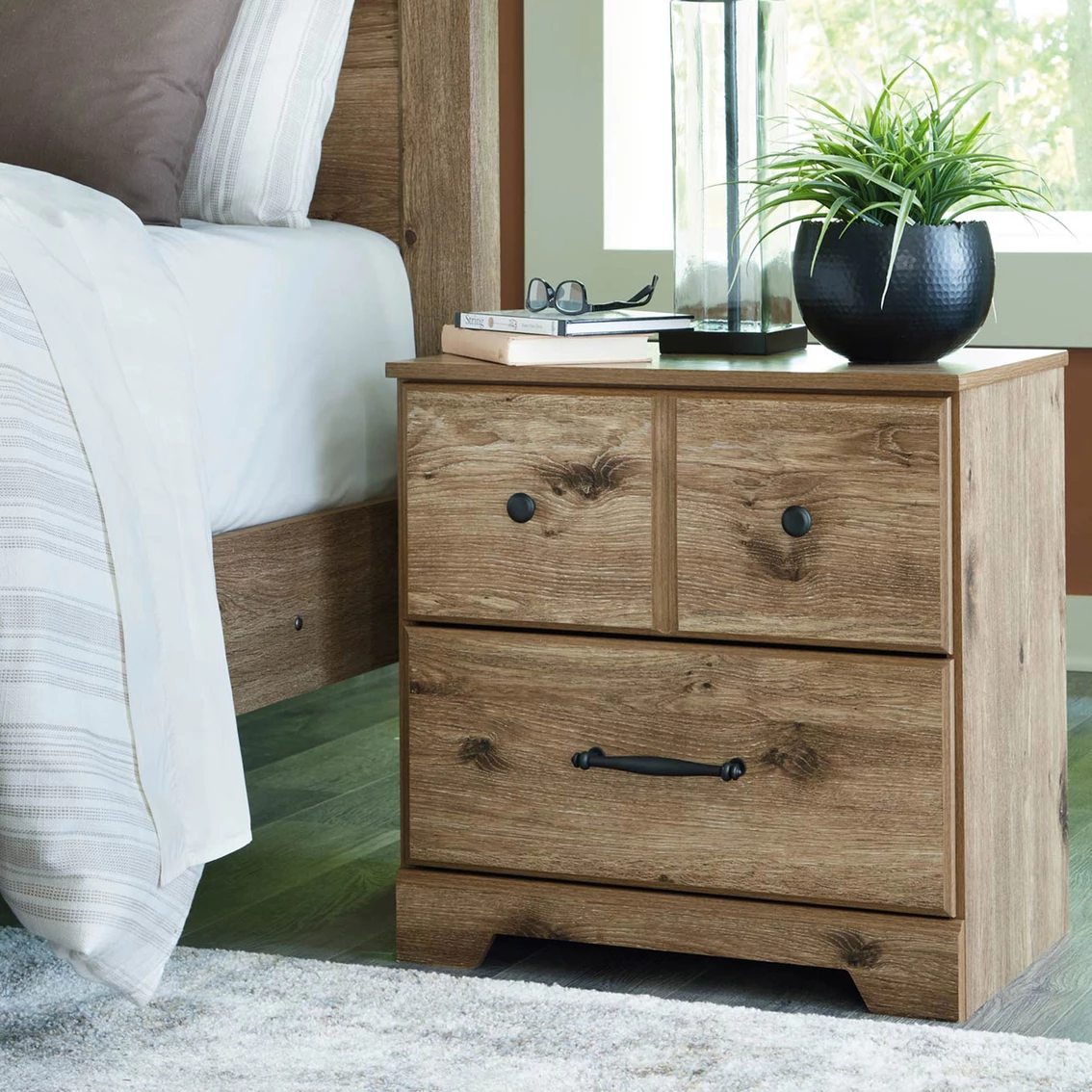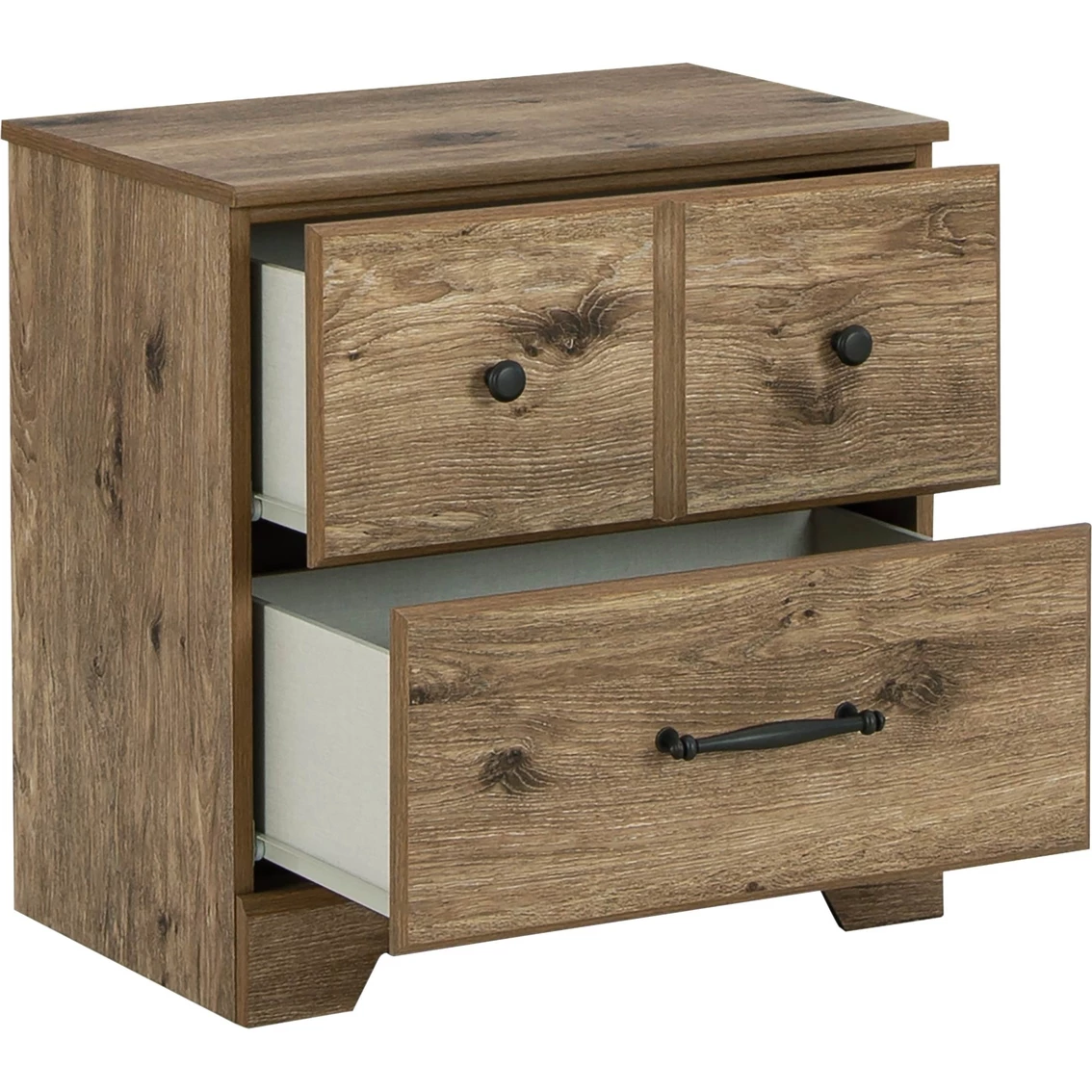 Merging a classic relaxed feel with modern appeal, the Shurlee nightstand fits your sense of style to a T. Replicated oak grain with a warm natural finish infuses an effortlessly cozy element that feels like home.