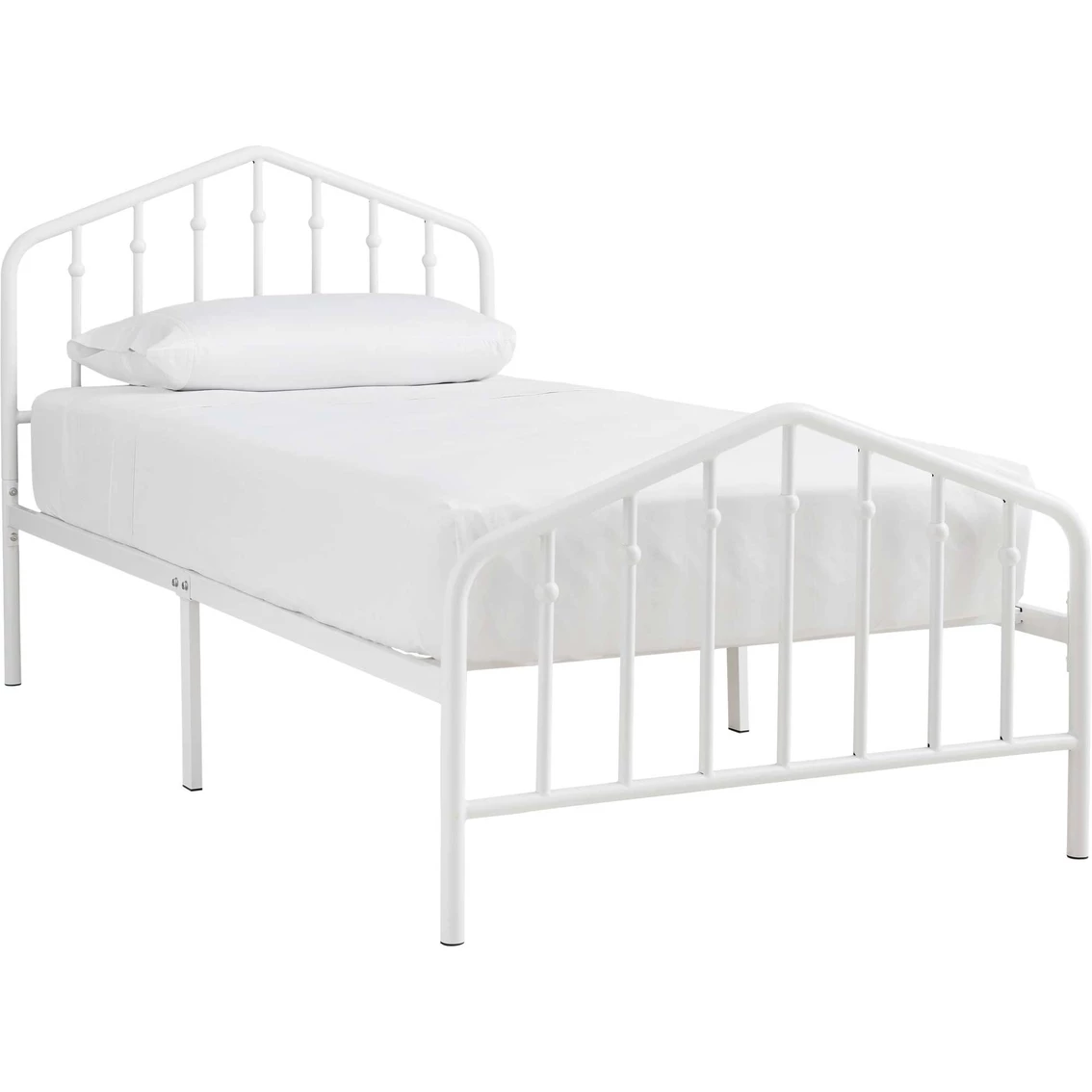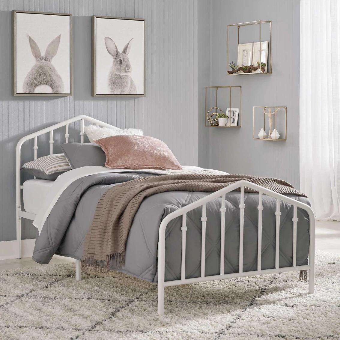 Mixing sleek sophistication and space-saving efficiency, the Signature Design by Ashley Trentlore Metal Bed is a dream come true. Timeless design exudes a relaxed vibe. Bent steel frame construction enhances the casual look and feel for a piece that plays nicely in any decor. Mattress available, sold separately. Featured item is metal bed only; images show options. Assembled dimensions: twin 42 x 78 x 41 in.; full 57 x 78 x 40 in.; queen 64 x 83 x 40 in. Model: B076-681.