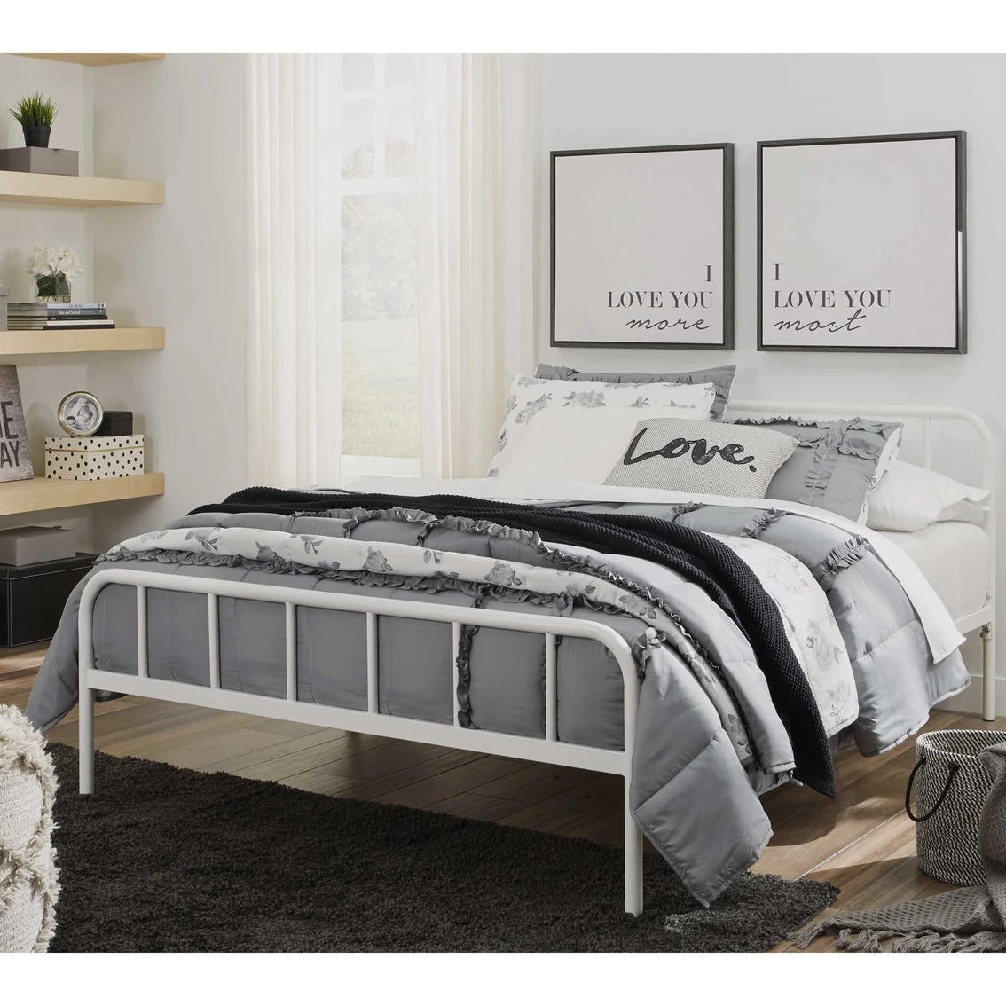 Mixing sleek sophistication and space-saving efficiency, the Trentlore platform bed is a dream come true. Timeless daybed design exudes a relaxed vibe. Bent steel frame construction enhances the casual look and feel for a piece that plays nicely in any decor. Mattress available, sold separately. Featured item is platform bed only; images show options. Assembled dimensions: twin 42″ W x 78″ D x 33″ H; full 57″ W x 78″ D x 33″ H