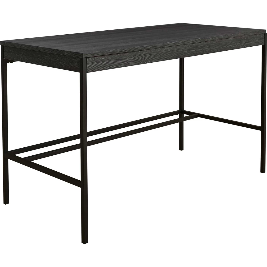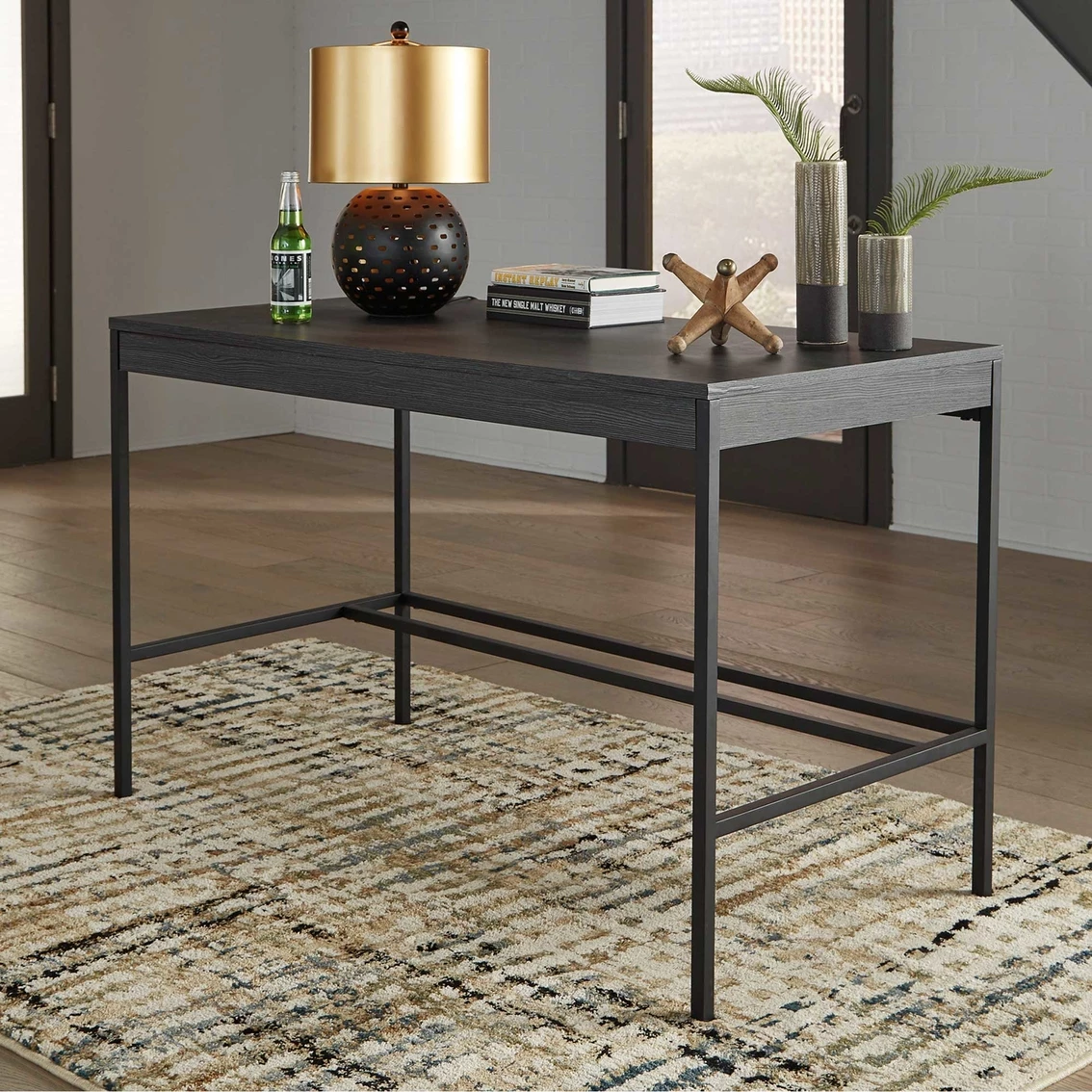 Elevate your home office with this simply sensational Signature Design by Ashley Yarlow Home Office Desk. Pairing a dark wood grain look with tubular black metal base for modern appeal, this minimalistic desk with ample work space is dressed to impress in a no-muss, no-fuss way. Featured item is desk only; images show options. Assembly required; instructions included for ease of assembly. Model: H215-14.