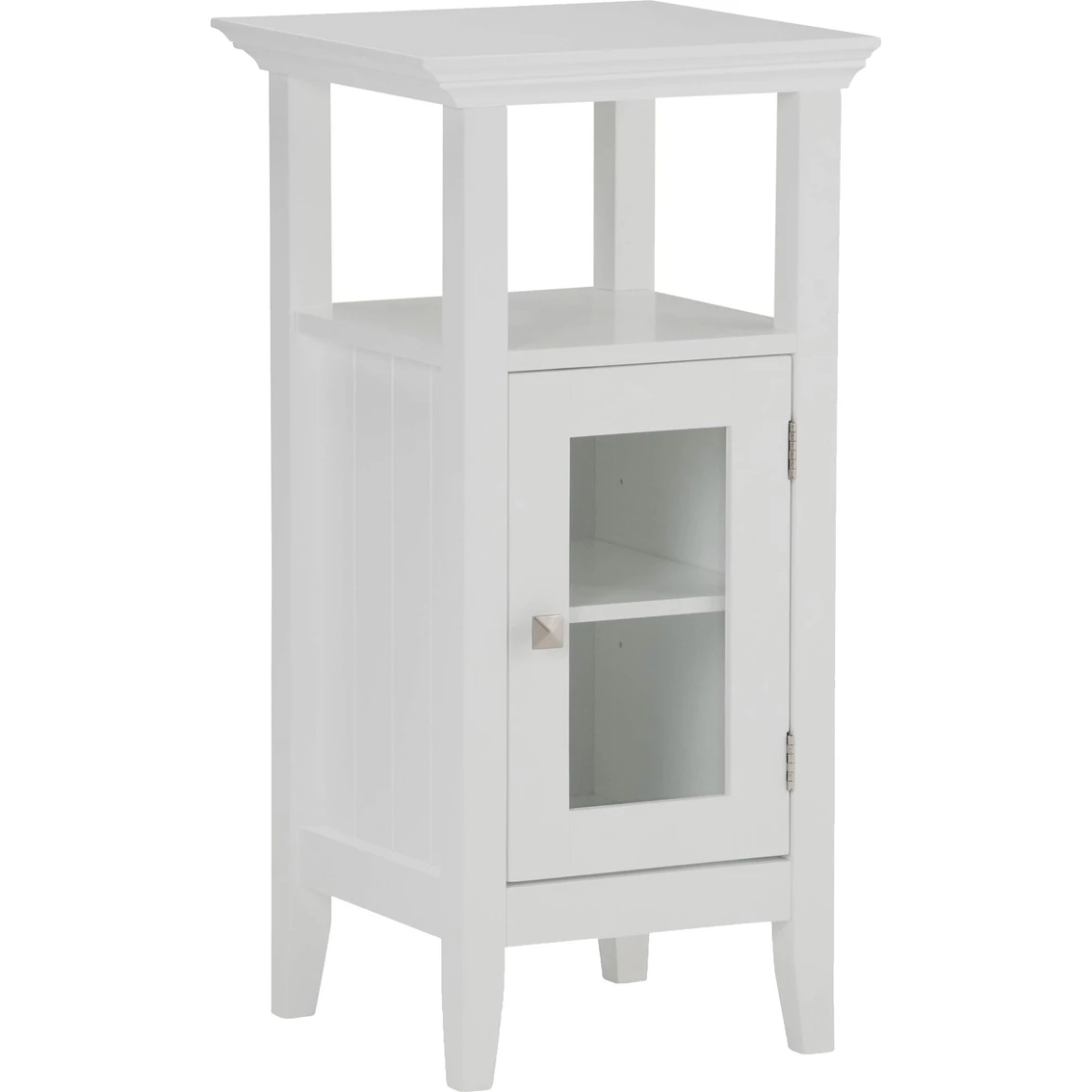 Organize the clutter and take back your bathroom space with the Acadian Bath Storage Floor Cabinet from Simpli Home. With classic details and a crisp Pure White finish, this storage cabinet will easily coordinate with existing decor and add a fresh look to your space. Featuring both open and enclosed storage space with tempered glass and brushed nickel hardware, it’s an attractive way to keep extra towels and toiletries on hand.