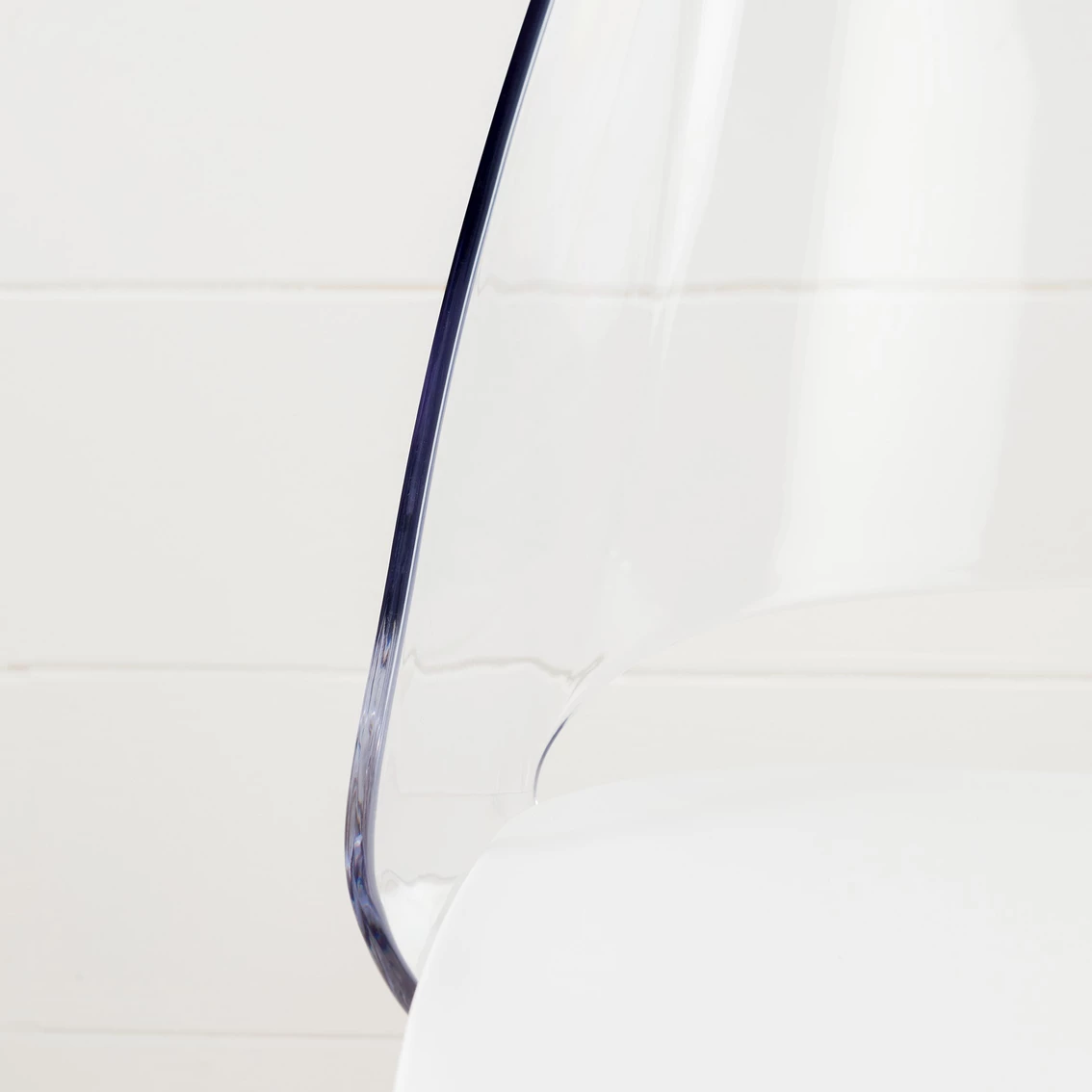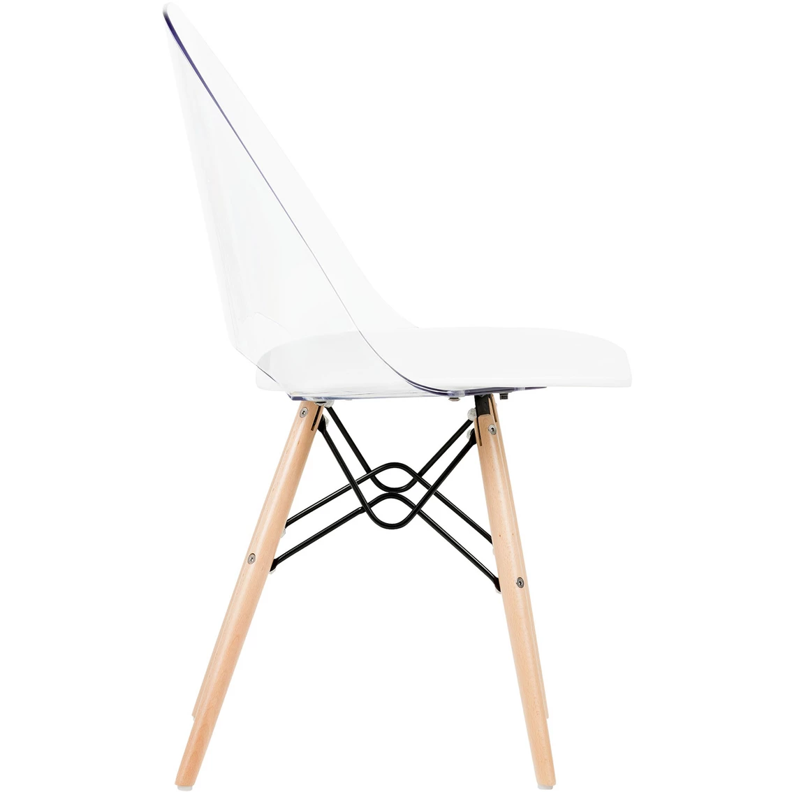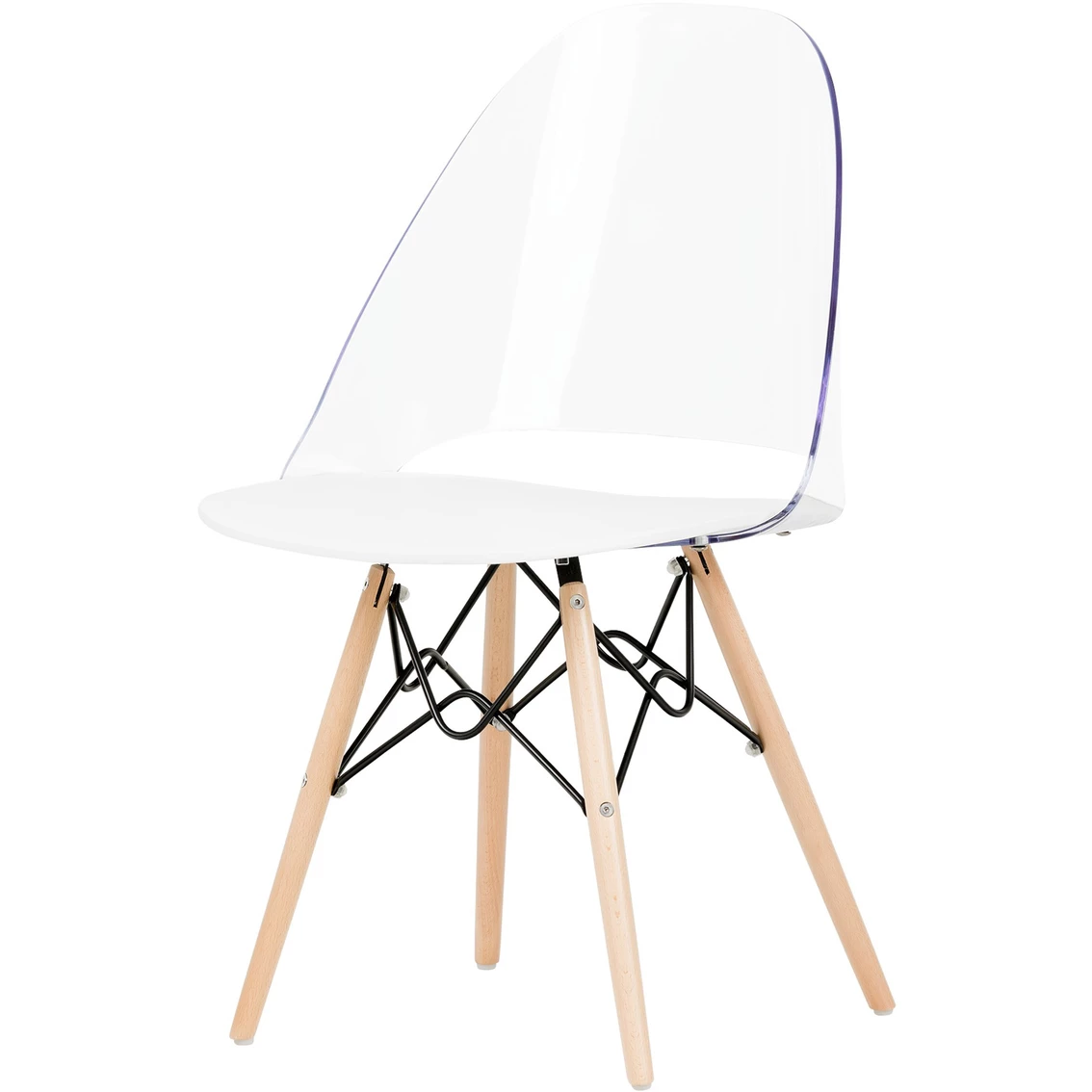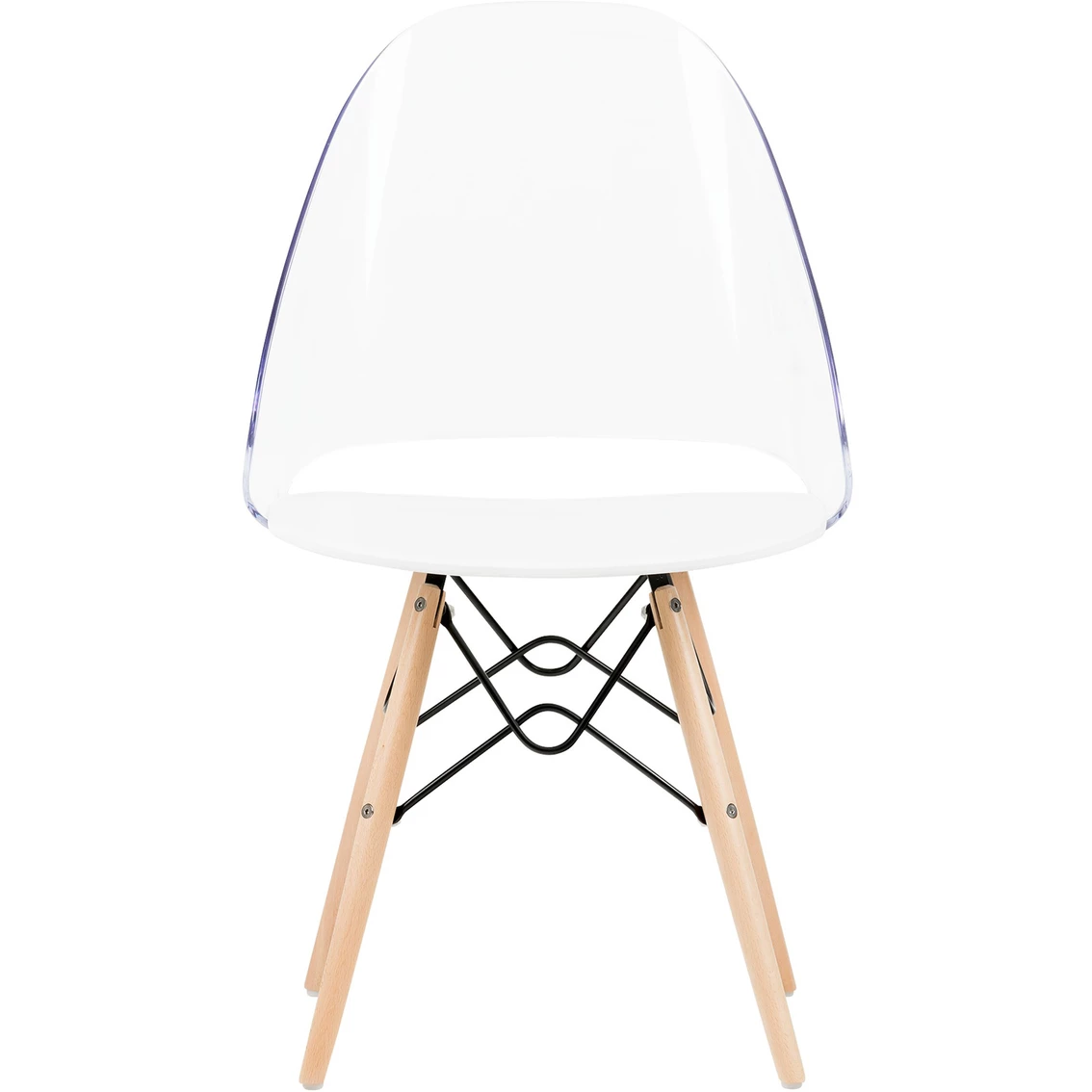 - Back of the chair is made of clear plastic and seat is made of grey plastic
