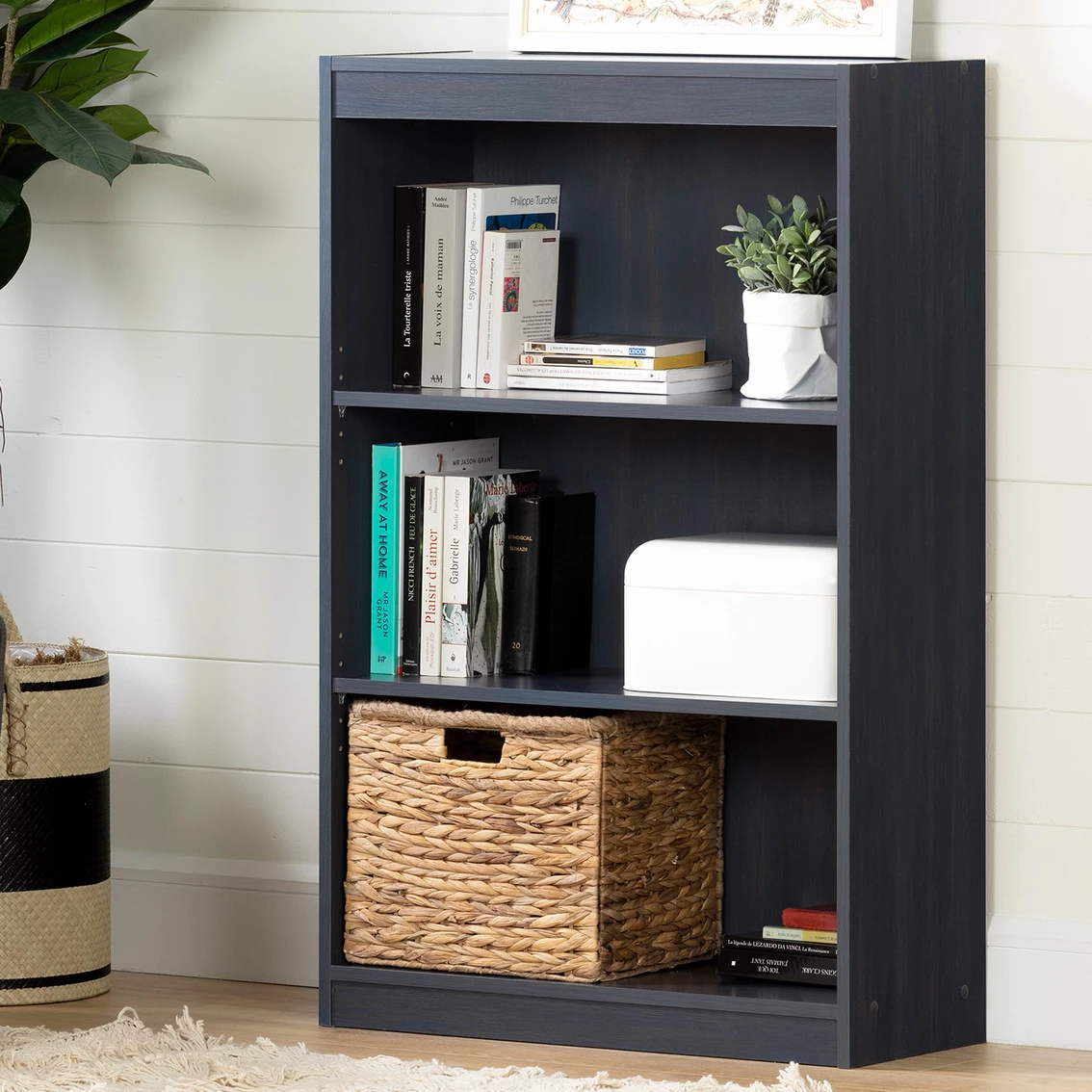 Ideal for your binders, books or decorative items, this versatile 3-shelf bookcase from South Shore can meet all of your storage needs. Both functional and attractive with its sleek contemporary styling, this bookcase is sure to enhance the look of any room in your home. It features three open, practical and accessible storage spaces separated by two adjustable shelves that can support up to 25 lbs. It’s perfect for your books and decorations. Meets or exceeds all North American safety standards. Accessories not included. Requires complete assembly by two adults. Tools not included. Ships in one box, so make sure to have a friend help you lift it. Packaging tested and certified to reduce the risk of damage during shipment. Made in North America with non-toxic laminated particleboard. Model: 12335.
