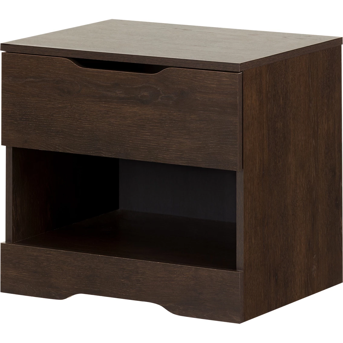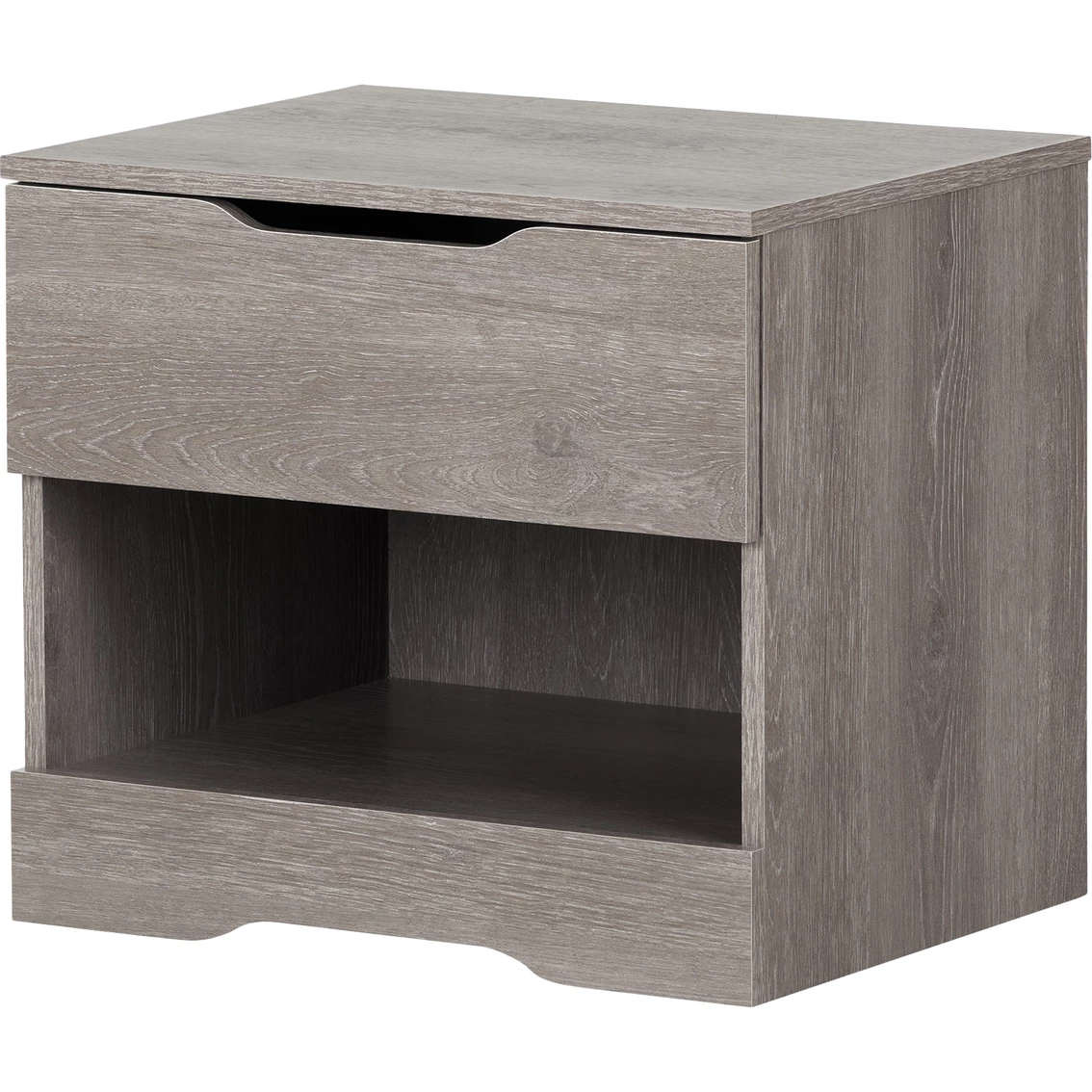 South Shore’s Holland 1-Drawer Nightstand with a cutout kickplate will give your bedroom a modern and distinguished look. In order to maximize bedside storage, it features an open storage space and a drawer decorated with a cut-out handle.