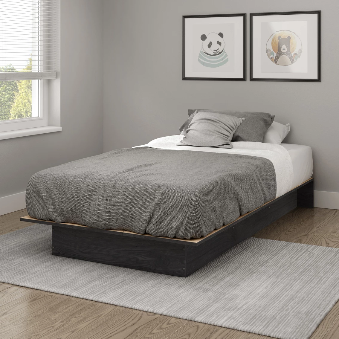 The South Shore Libra Platform Bed was designed with your little one’s safety in mind. This bed features clear rubber corners to avoid any painful sharp-corner injuries. In addition to safe and soft corners, this economical choice doesn’t require a box spring or foundation. Place your mattress directly on top of the sturdy frame and being using right away. All products come with a clear assembly document that will guide you through all steps. Exclusive 5-year limited guarantee. Product dimensions: 40 in. (W) x 74.75 in. (D) x 8.25 in. (H), 86.0 lb. Model: 10435.