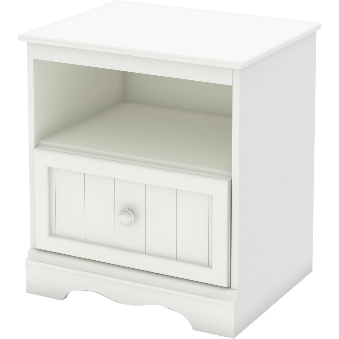 The South Shore Savannah 1 Drawer Nightstand End Table With Storage fills your bedroom with classic elegance. Designed with beauty and function in mind down to the last detail. Traditional look and feel with classic details. The drawer features durable metal slides. Each nightstand has an open space perfect for books and a drawer. Plenty of space for clothes and other items. All products come with a clear assembly document that will guide you through all steps. Exclusive 5-year limited guarantee. Product dimensions: 19.75 in. (W) x 18.75 in. (D) x 22.5 in. (H), 35.0 lb.