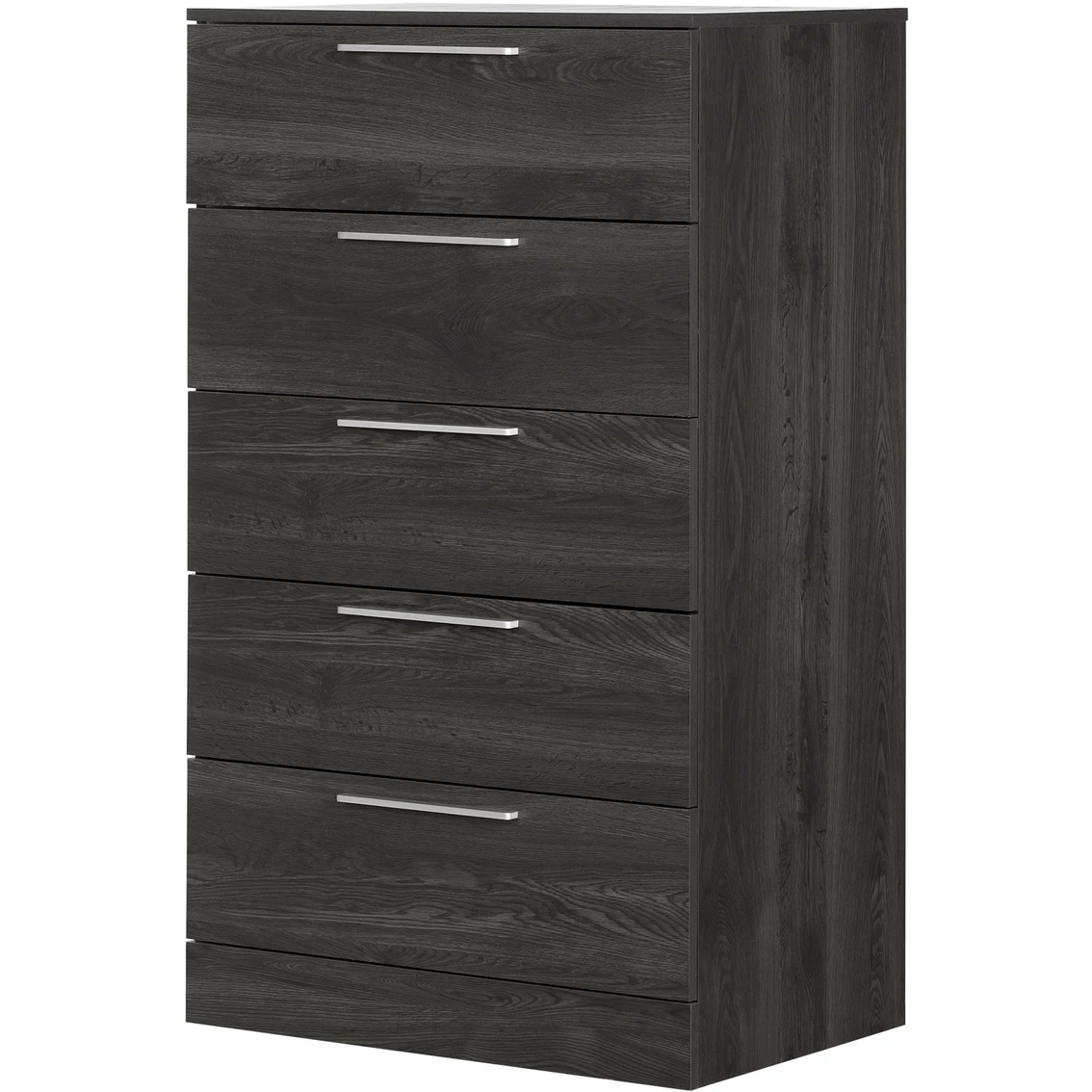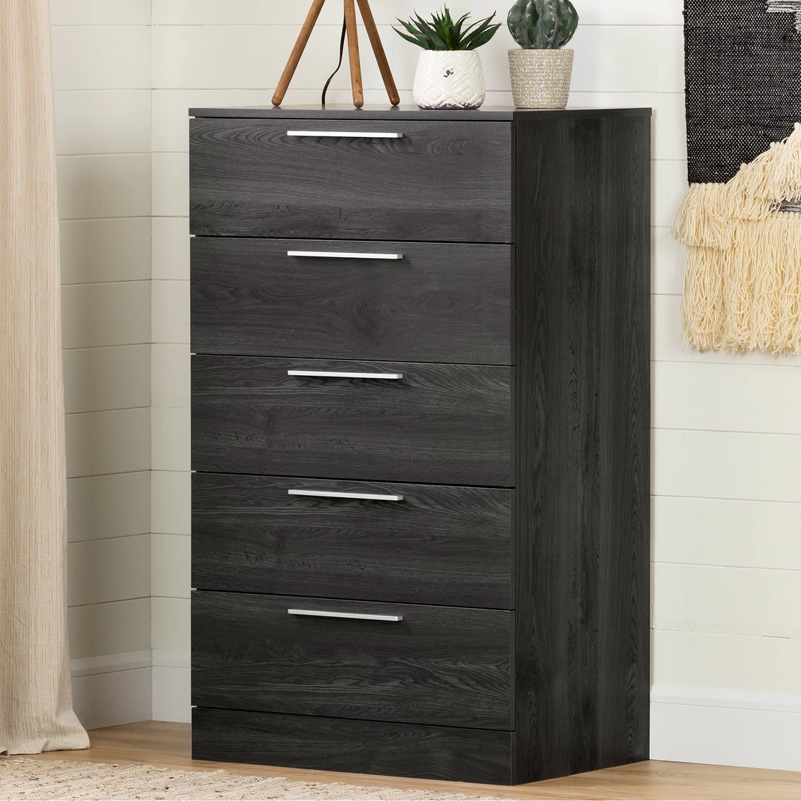 The Step One Essential 5-Drawer Chest from South Shore is totally modern, with very straight lines and long, narrow metal handles at the top of each drawer for a distinctive look.
